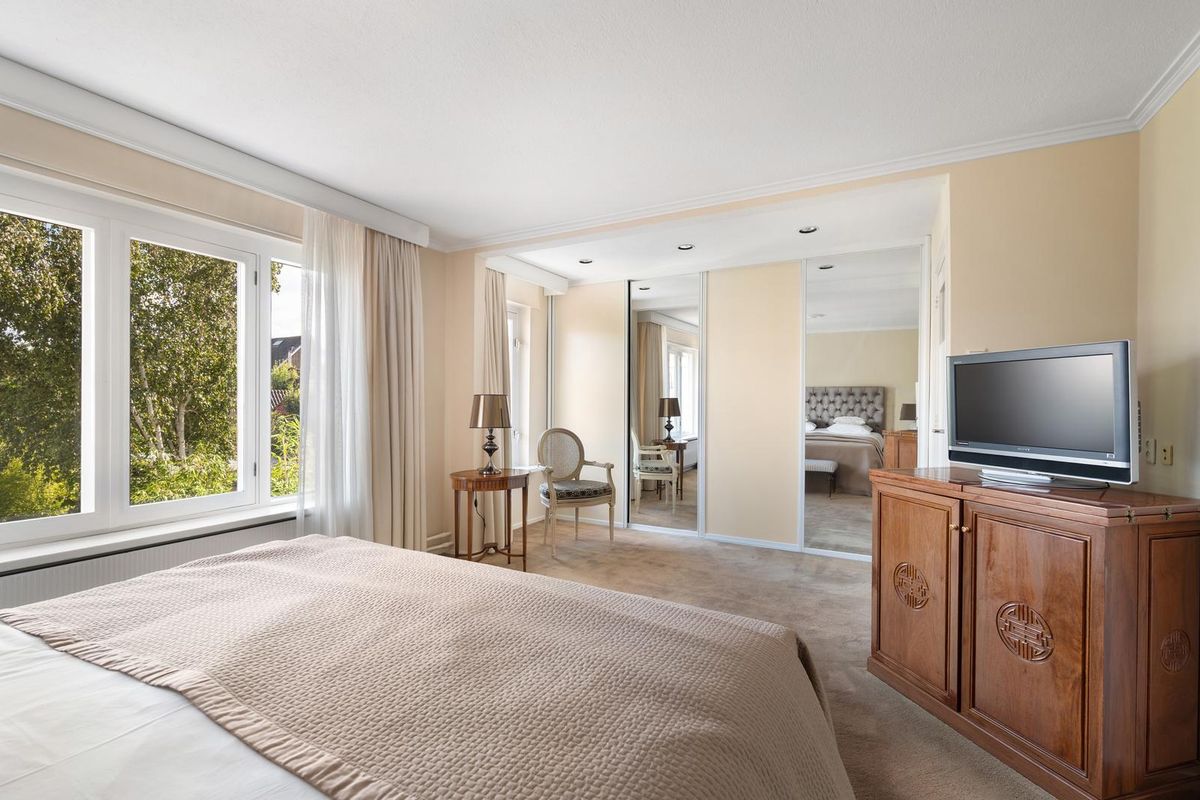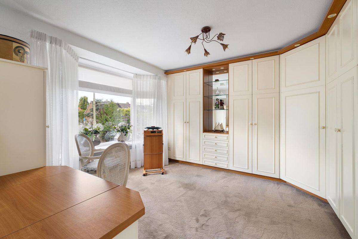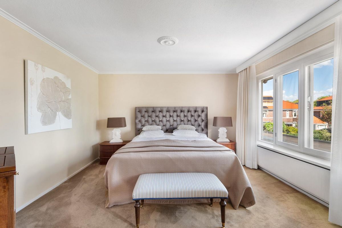 De eerste verdieping telt twee ruime slaapkamers. De kamer aan de voorzijde is licht en voorzien van op maat gemaakte kastenwand. Aan de achterzijde ligt de hoofdslaapkamer, met veel raampartijen, een ingebouwde kastenwand en vele ramen met prachtig uitzicht op de tuin. Ook bevindt zich op deze verdieping de badkamer, compleet met een ligbad met douche combinatie, houten badmeubel met granieten blad en hangend toilet.