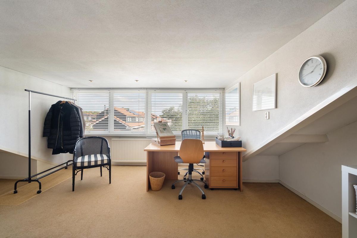 De zolderverdieping verrast met een grote derde slaapkamer met vaste trapleuning. Dankzij de dakkapel is dit een lichte ruimte die multifunctioneel te gebruiken is als slaapverblijf, werkkamer of speelzolder. Onder de schuine kap is extra bergruimte aanwezig.