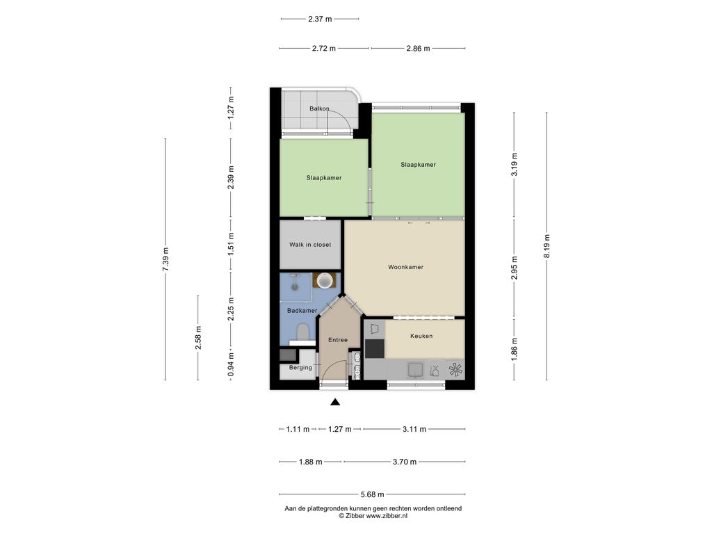 Entree, hal met meterkast, bergkast en toegang tot de woonkamer en de badkamer.