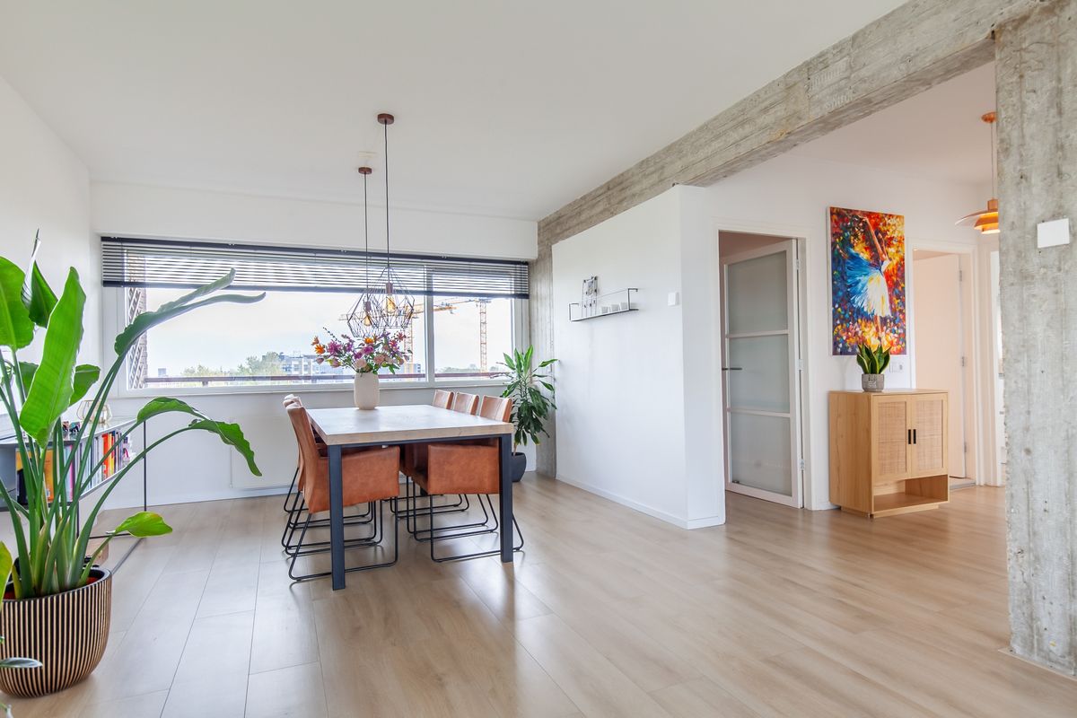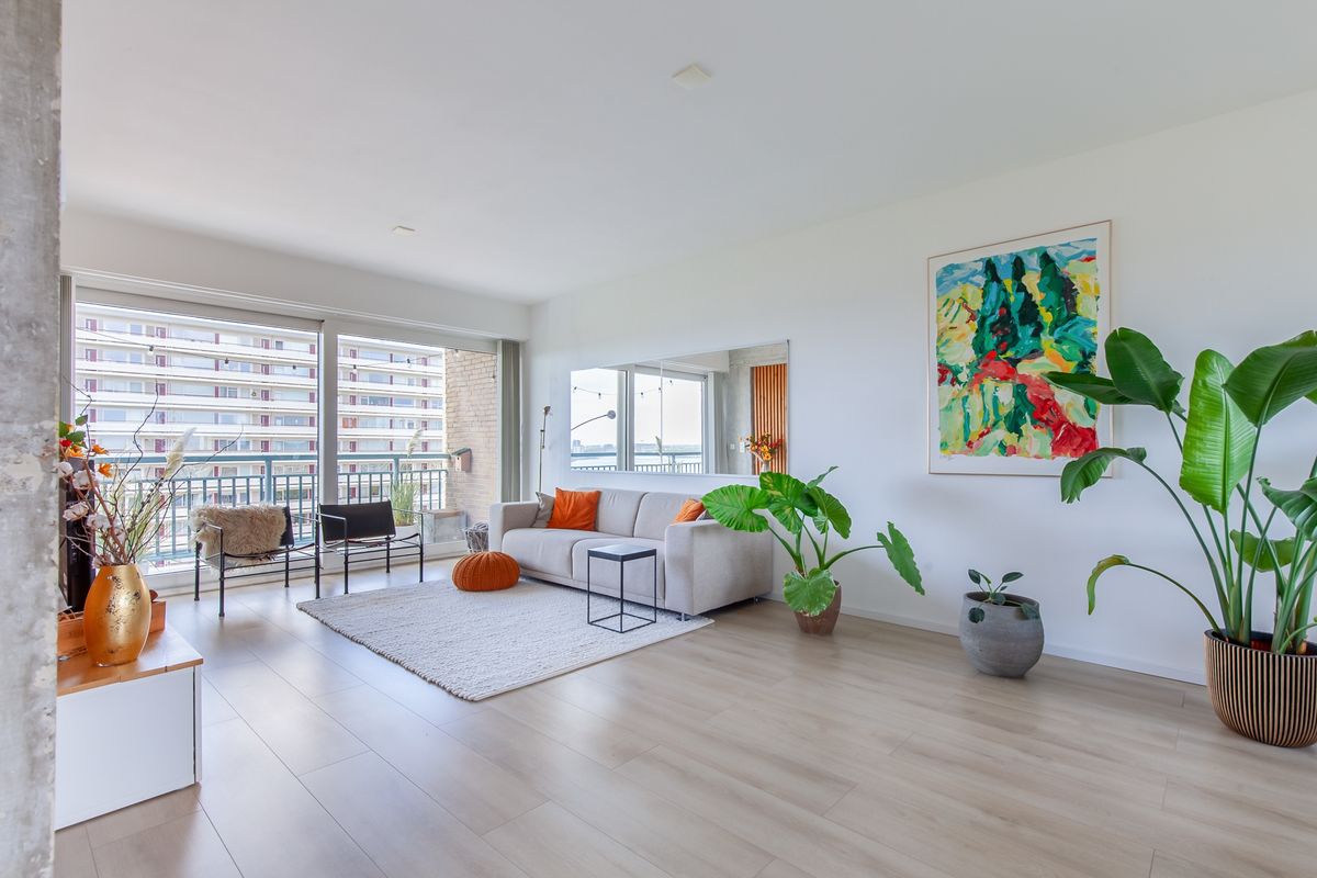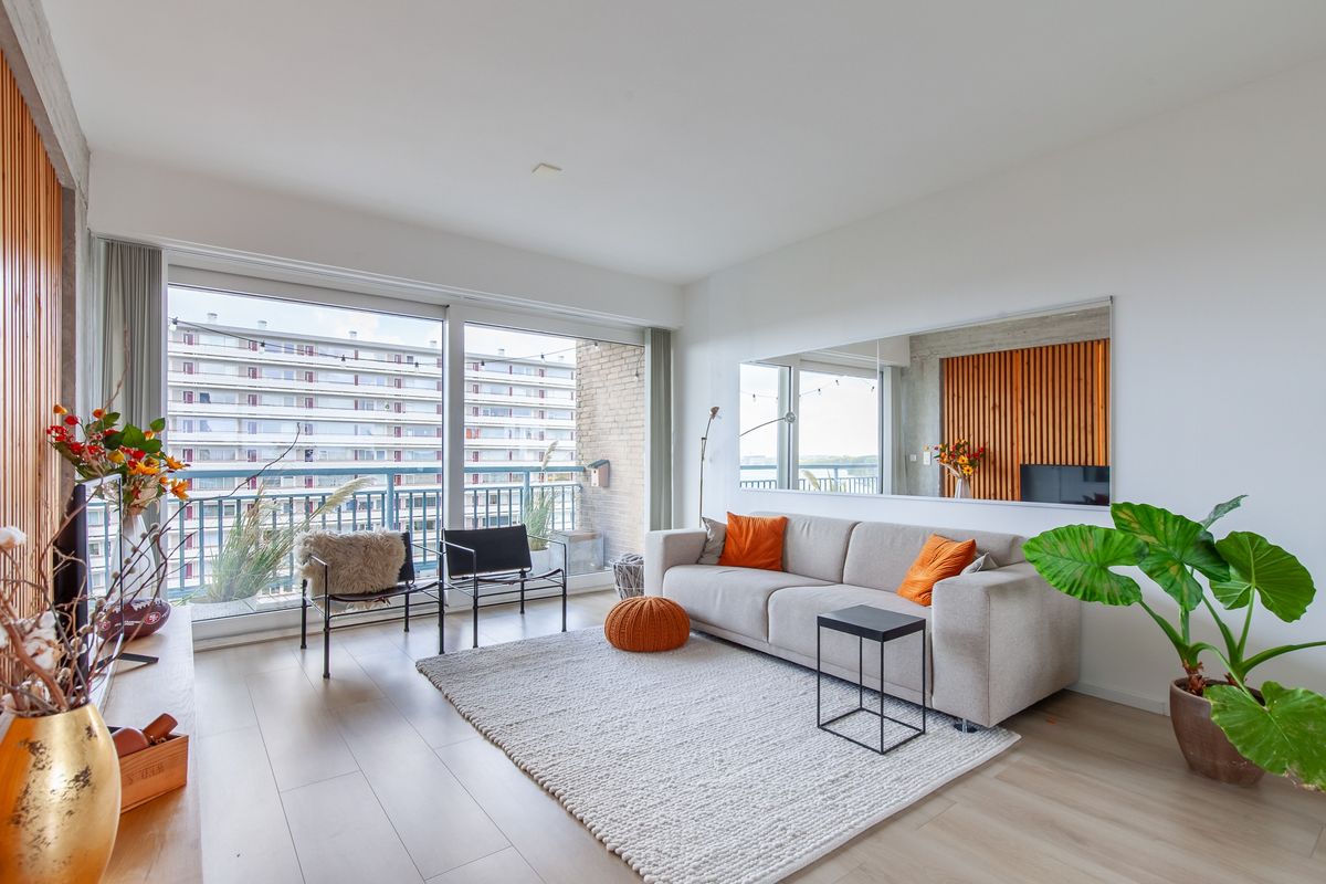 Bright and beautifully renovated modern apartment (76 m²) with lift and sunny west-facing balcony overlooking the Sloterplas in Amsterdam Nieuw-West. The current owner has completely refurbished the property, including a new kitchen, bathroom, and flooring throughout. The use of natural materials such as wooden slats and the exposed concrete of the original structure gives the apartment a calm and distinctive character. Large windows and a wide sliding door allow maximum natural light to flow through from both sides of the apartment. The ground lease has been bought off in perpetuity, and there is a private storage room in the basement. Experience the comfort of a bright two-bedroom apartment with a sunny balcony and open views of greenery and Sloterplas, all just a 15-minute cycle from the vibrant heart of Amsterdam. We look forward to welcoming you.