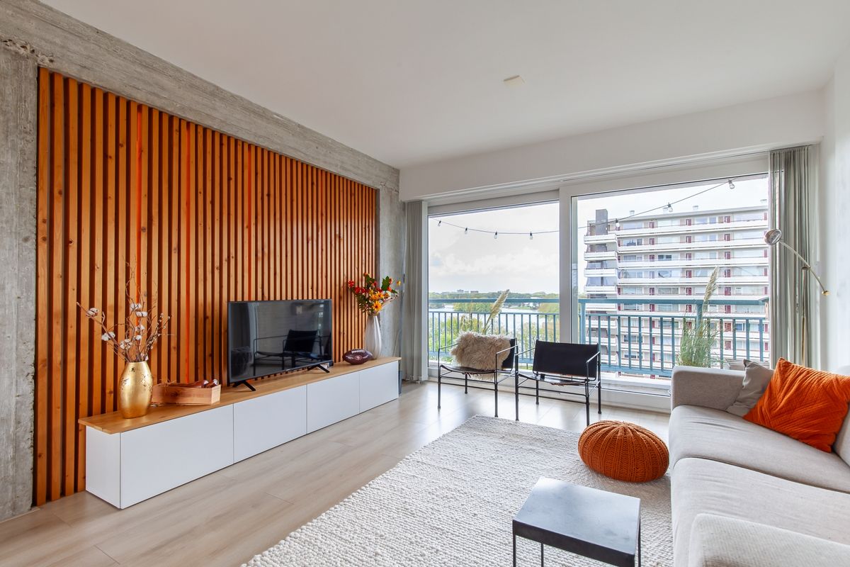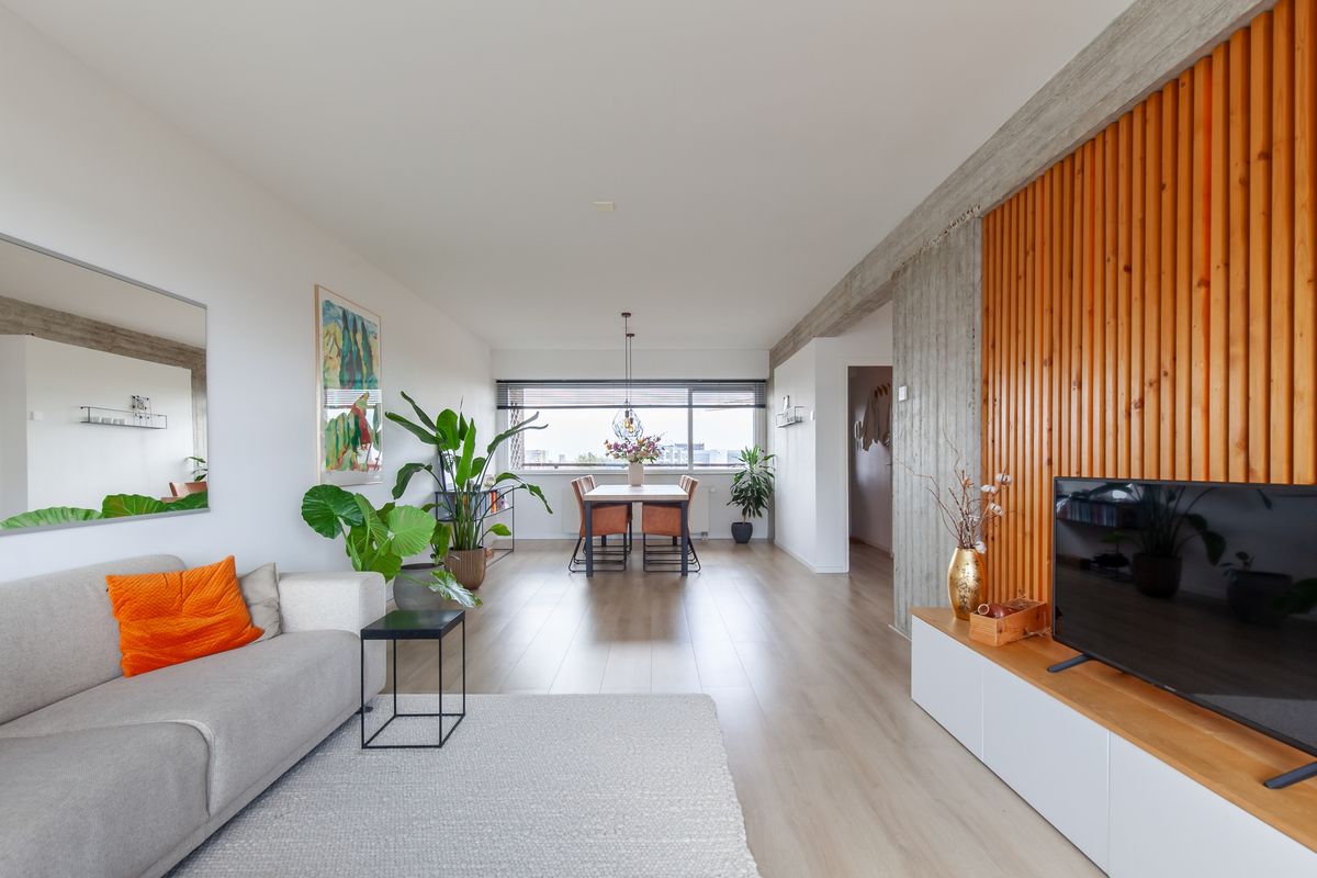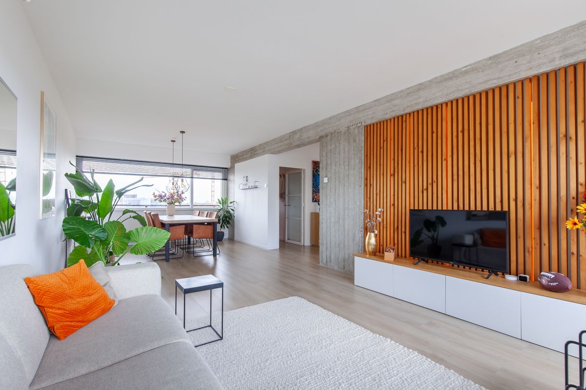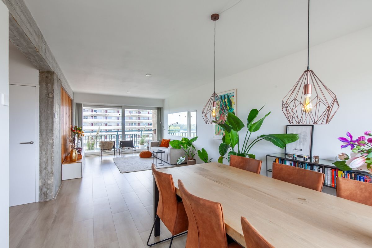 Bright and beautifully renovated modern apartment (76 m²) with lift and sunny west-facing balcony overlooking the Sloterplas in Amsterdam Nieuw-West. The current owner has completely refurbished the property, including a new kitchen, bathroom, and flooring throughout. The use of natural materials such as wooden slats and the exposed concrete of the original structure gives the apartment a calm and distinctive character. Large windows and a wide sliding door allow maximum natural light to flow through from both sides of the apartment. The ground lease has been bought off in perpetuity, and there is a private storage room in the basement. Experience the comfort of a bright two-bedroom apartment with a sunny balcony and open views of greenery and Sloterplas, all just a 15-minute cycle from the vibrant heart of Amsterdam. We look forward to welcoming you.