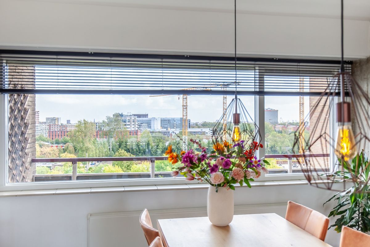 Situated on the ninth floor, the apartment forms part of a well-maintained residential complex with two lifts, designed in 1964 by architect Piet Zanstra. The complex is located in the ‘Westelijke Tuinsteden’ (Western Garden Cities), designed according to the principles of Light, Air and Space. Both the building and the area reflect these ideals: the apartment receives abundant natural light and offers magnificent views over the water and surrounding greenery.