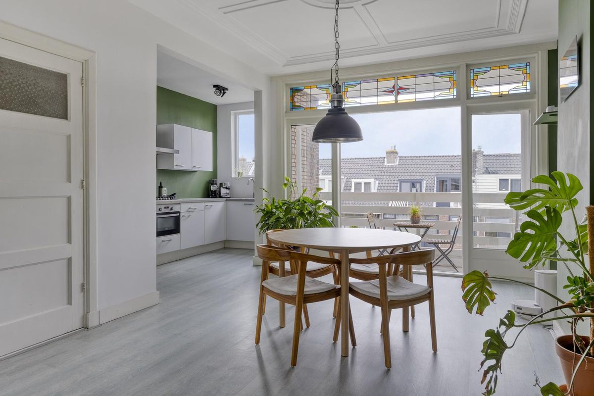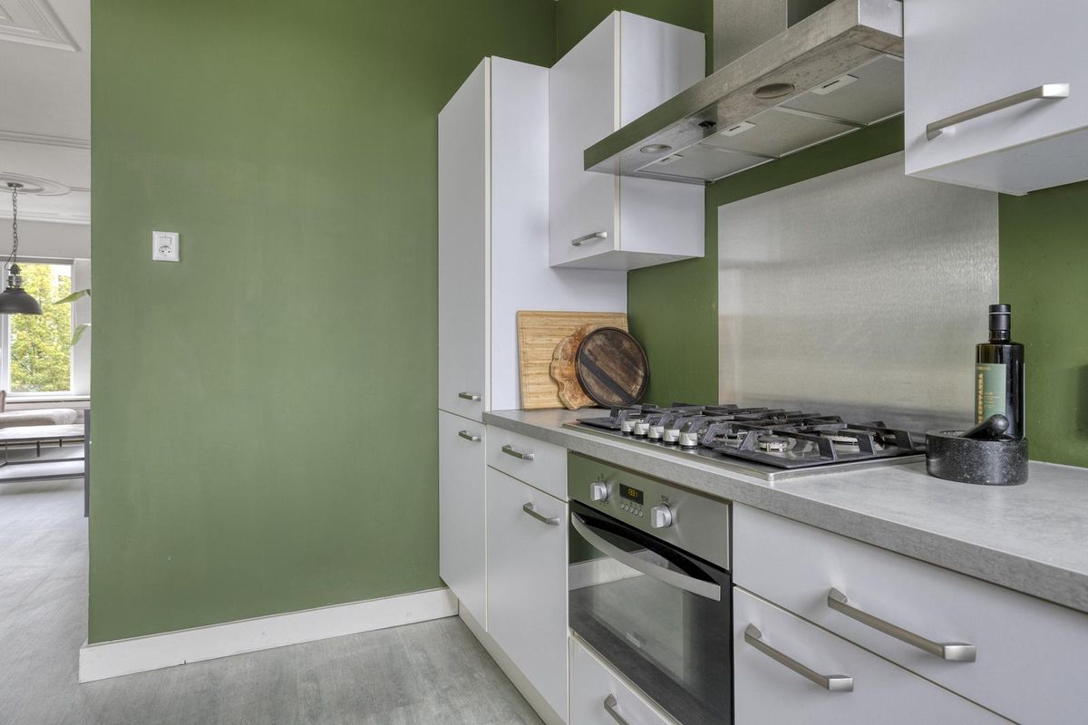 Via je eigen entree op de begane grond stap je de woning binnen en neem je de trap naar de woonverdieping. Hier ontvouwt zich de ruime woonkamer, waar prachtige hoge plafonds en een authentieke plafondlijst de sfeer van de jaren ’30 benadrukken. Grote ramen aan de voorzijde zorgen voor een zee aan licht en bieden uitzicht op de laan met haar statige bomen. De doorlopende vloer verbindt het zit- en eetgedeelte, waardoor er een fijne balans ontstaat tussen gezellig samen zijn en ruimte voor jezelf. Aan de achterzijde is genoeg ruimte voor een gezellige eethoek bij de openslaande balkondeuren met glas-in-lood bovenraampjes. Aangrenzend ligt de moderne keuken, uitgevoerd in een lichte kleurstelling en voorzien van diverse inbouwapparatuur, zoals een gaskookplaat met afzuigkap, combi-oven, koel-/vriescombinatie en een vaatwasser. Een praktische berging op deze verdieping huist de witgoedaansluitingen en extra opbergruimte.