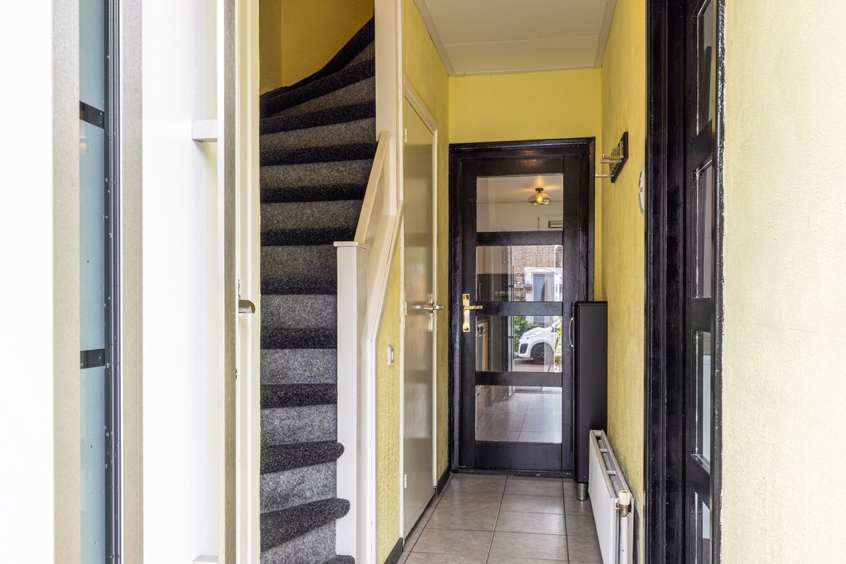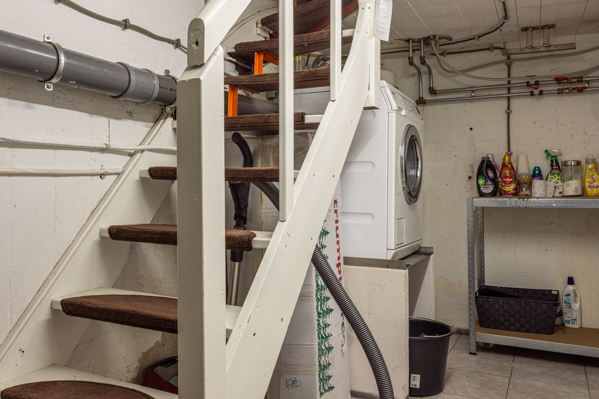 De voortuin is netjes en onderhoudsvriendelijk aangelegd. Via de entree met tegelvloer kom je in de ontvangsthal met garderobe, meterkast (vernieuwd in 2016) en toegang tot de provisiekelder. In deze kelder bevinden zich tevens de witgoedaansluitingen. Daarnaast is er op de begane grond een separaat toilet aanwezig, uitgerust met staand closet en fonteintje. De woonkamer is een fijne doorzonkamer met veel daglicht en een laminaatvloer. Dankzij de rolluiken is er eenvoudig een gezellige sfeer en privacy te creëren. De woonkamer loopt door in een uitbouw, waar de open keuken is gesitueerd. De keuken is eveneens voorzien van laminaatvloer en is zowel via de woonkamer als via de hal bereikbaar. Hier vind je volop kastruimte en inbouwapparatuur: keramische kookplaat, afzuiging, heteluchtoven, koelkast, vriezer en een vaatwasser (nieuw in 2025). Een muurkast biedt plaats aan de cv-installatie. Vanuit de keuken is er toegang tot de achtertuin.