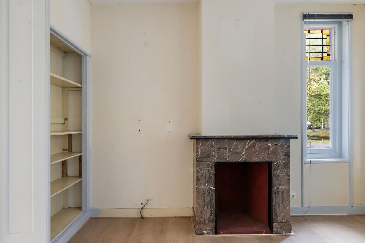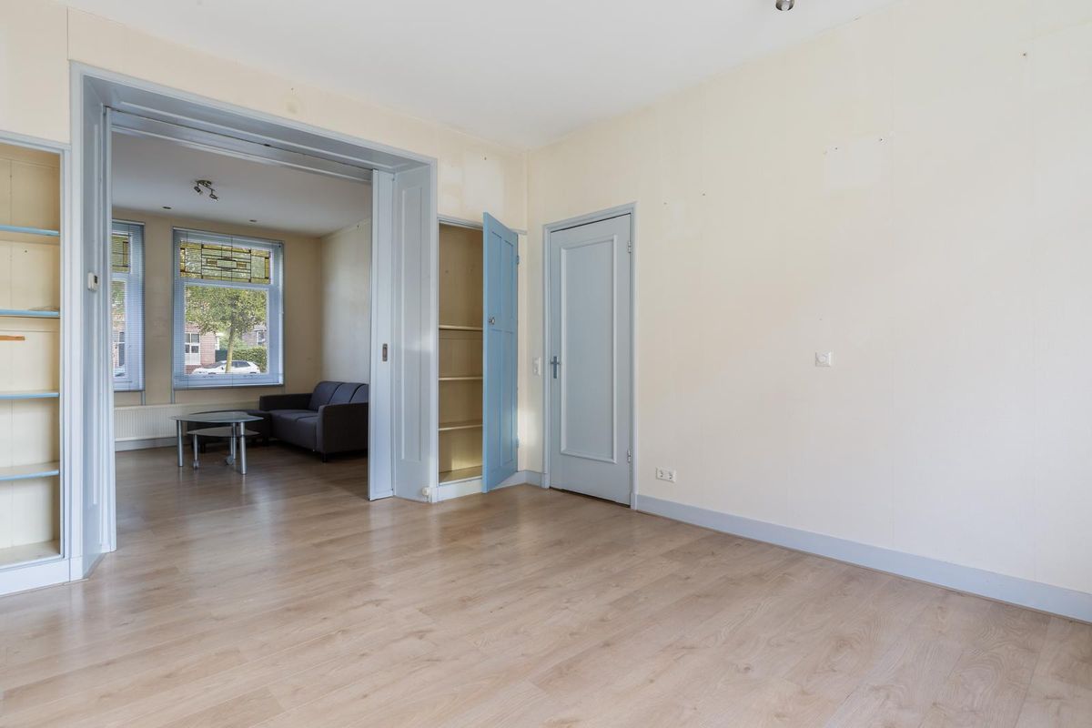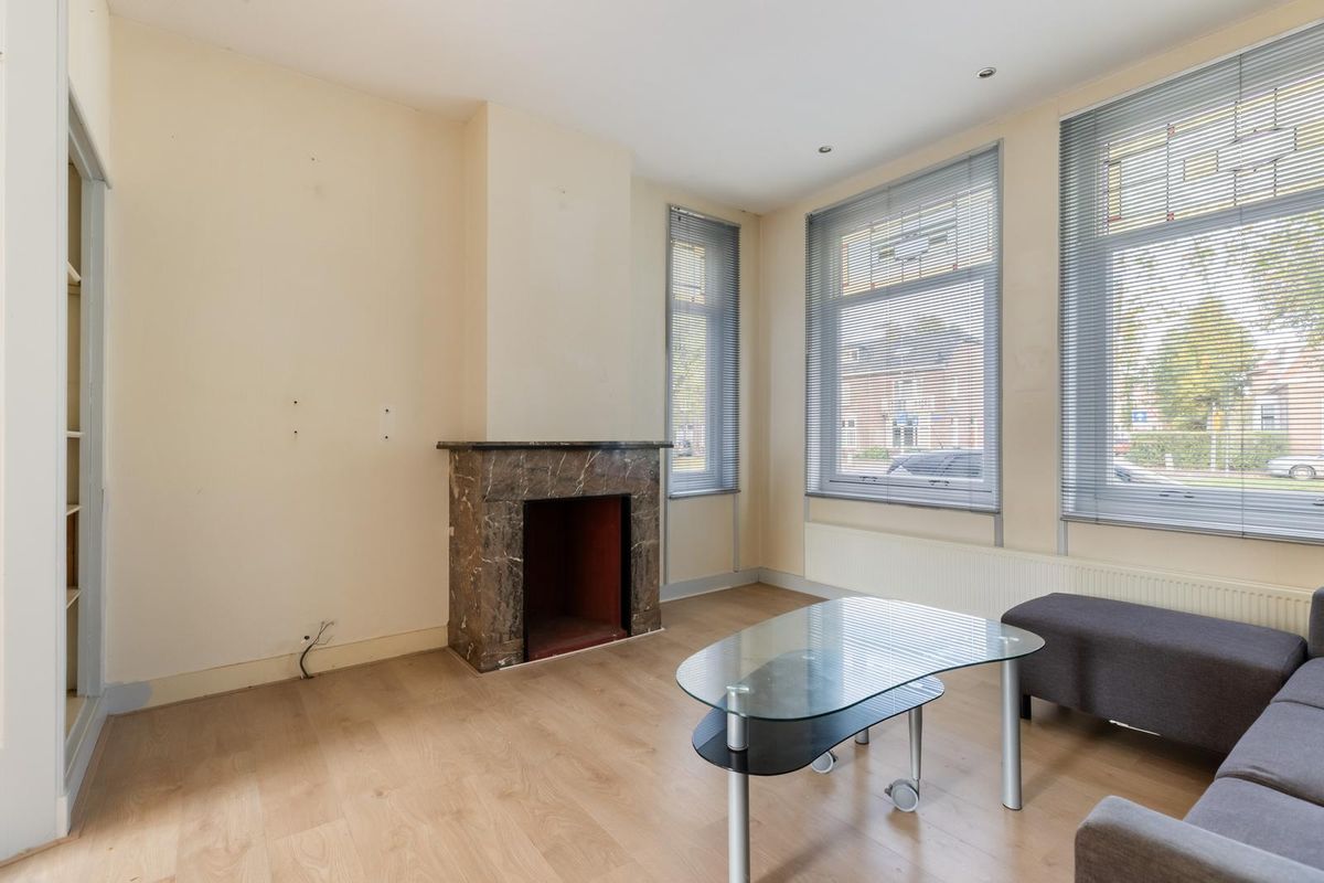 De living, een kamer en-suite met het zitgedeelte aan de voorzijde een het eetgedeelte aan de achterzijde. Vanaf de voorzijde is er vrij uitzicht over de breed opgezette Burgemeester Martenssingel.