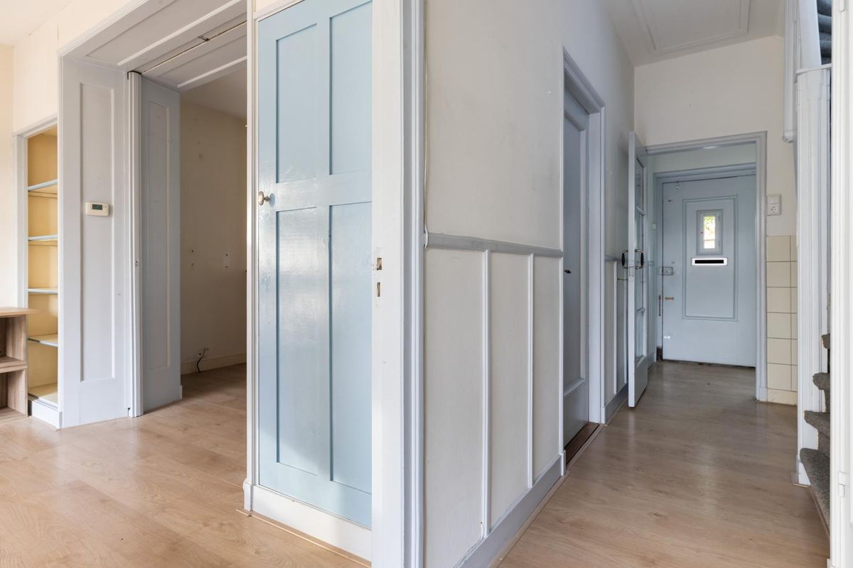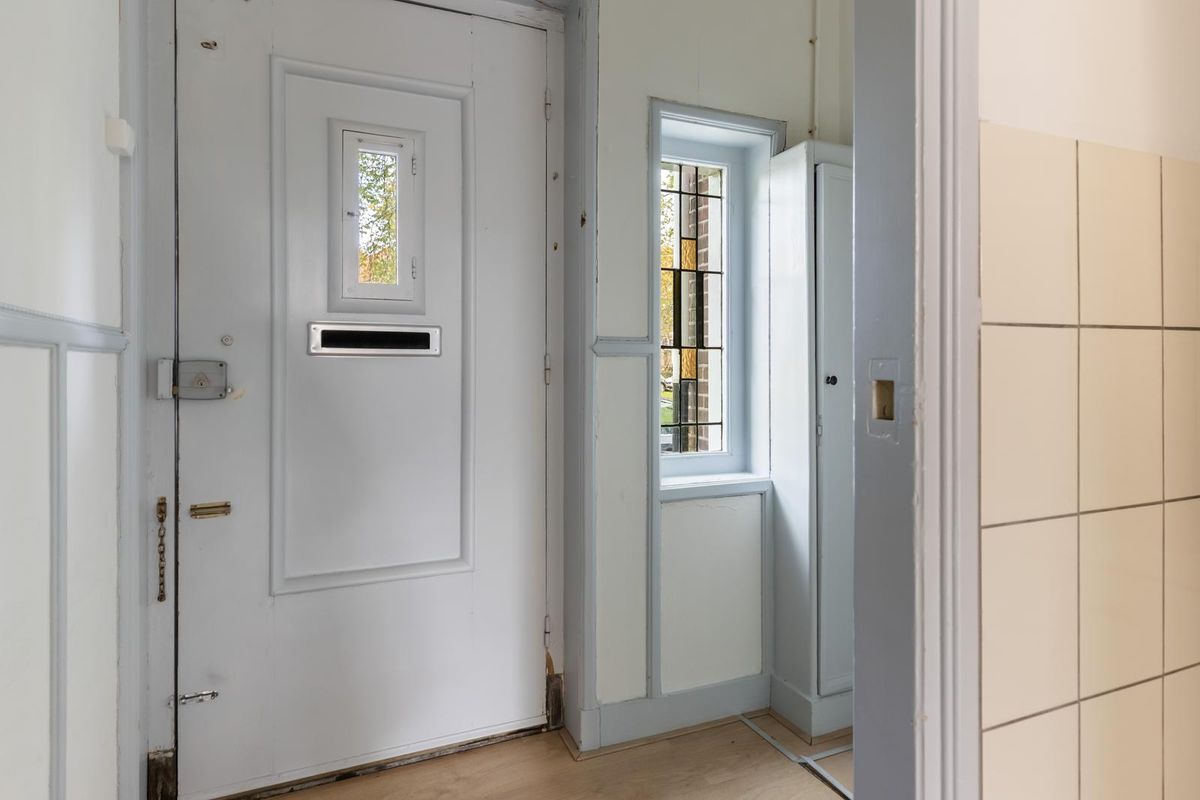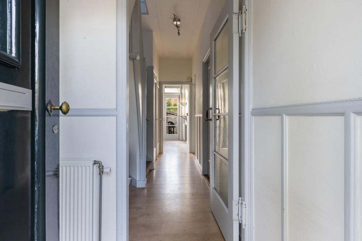 Entree met vestibule en via authentieke klapdeur met bommelscharnier toegang tot riante hal. In de hal bevindt zich de aansluiting voor de wasmachine, een vaste kast, de vernieuwde toiletruimte, trapopgang en toegang tot de living en de keuken.