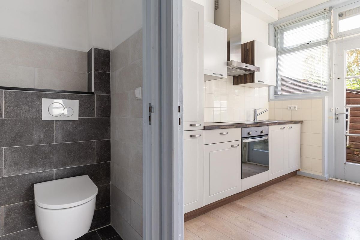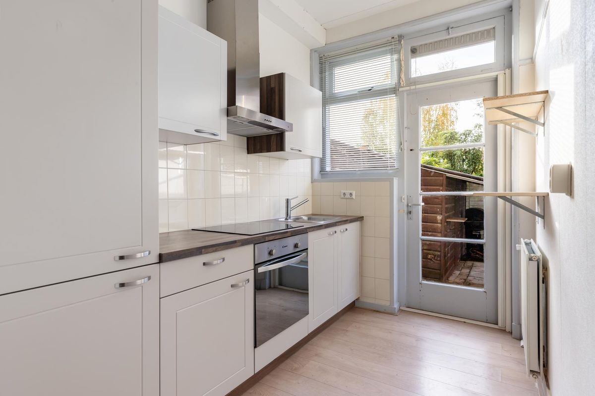 Aan de achterzijde bevindt zich de keukenruimte met rechte opstelling v.v. inbouwapparatuur. Via de keuken is er toegang tot de achtertuin.