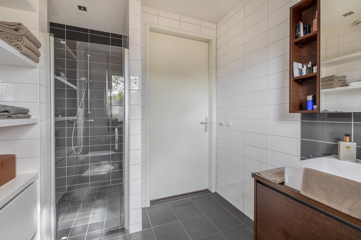 De tweede badkamer is voorzien van een douche, wastafel en toilet.