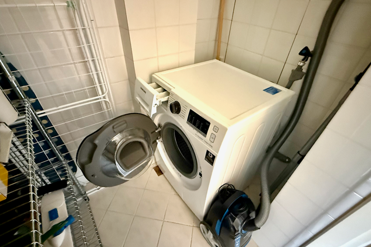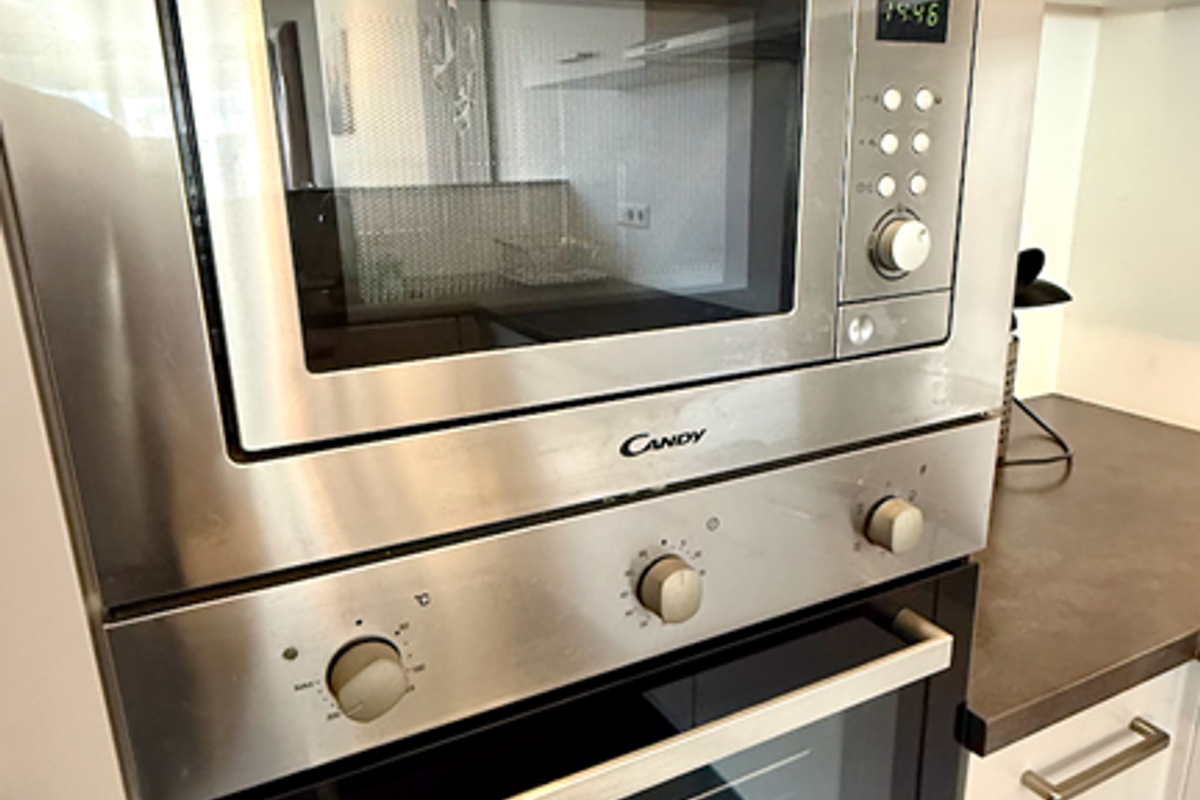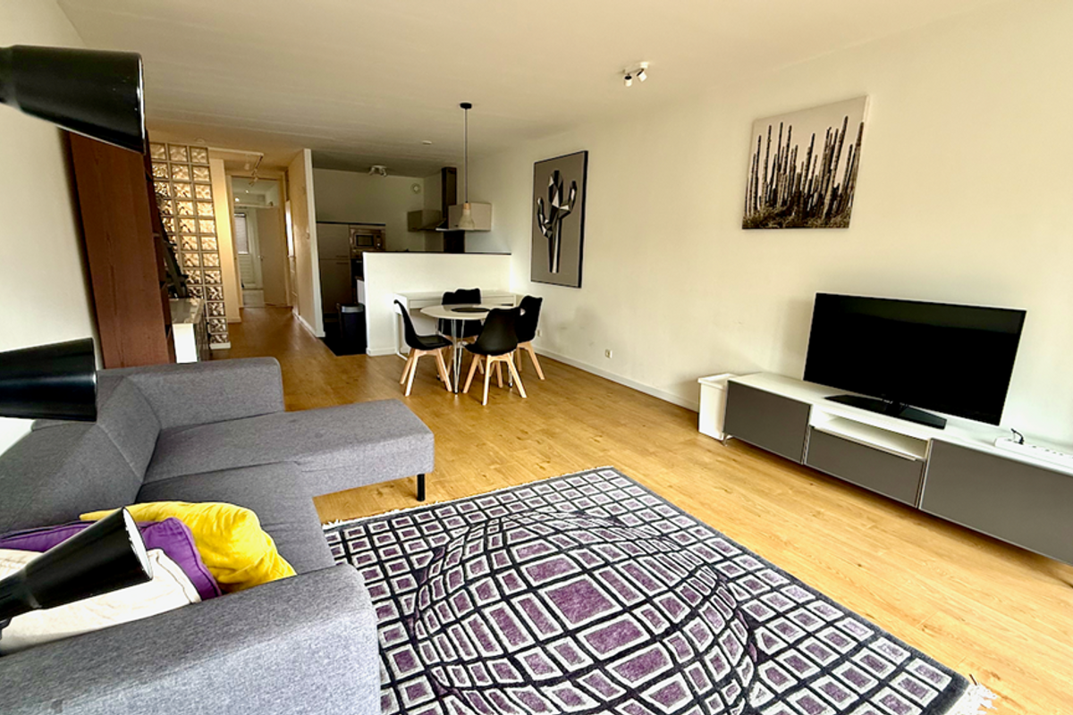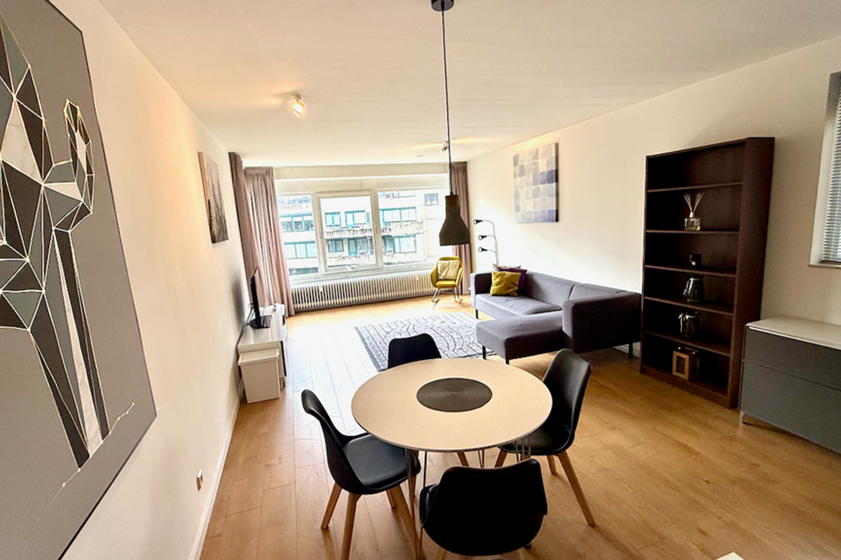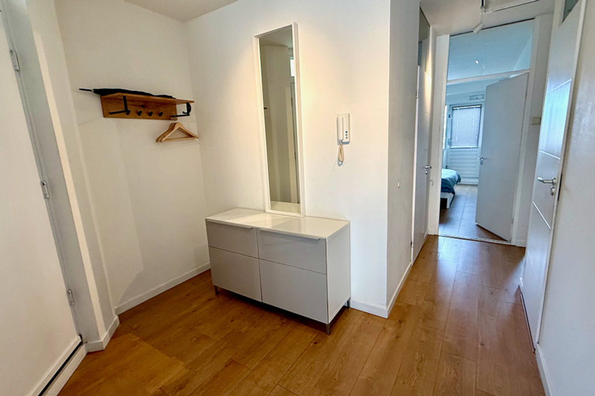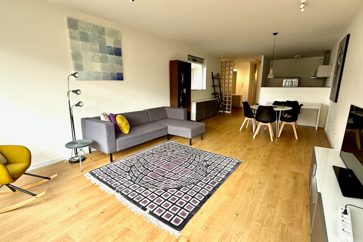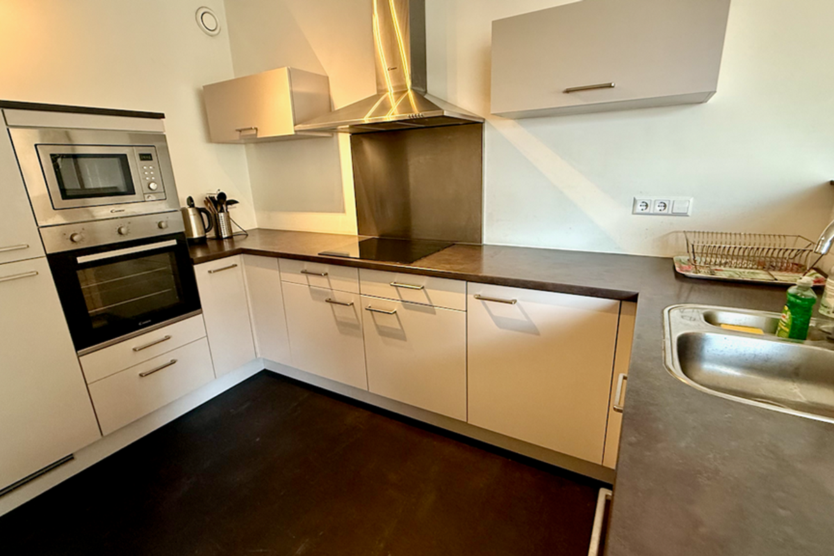 Shared main entrance with elevator to the 4th floor. Entrance to the apartment with a hallway and doors to all the rooms. Spacious and bright living room with doors to the balcony. Tastefully decorated and furnished. Open kitchen with bar and appliances such as dishwasher, oven, microwave, sink, freezer / fridge, induction stove and ample storage space. Master bedroom with big windows, a wardrobe and comfortable double bed. The 2nd bedroom can be used as a study or home office or sleeping room. Bathroom with walk-in shower, towel radiator and sink. Seperate toilet with faucet. A washing machien / dryer combination is available. Centrally heated and laminate flooring throughout the apartment. Fully double glazed.