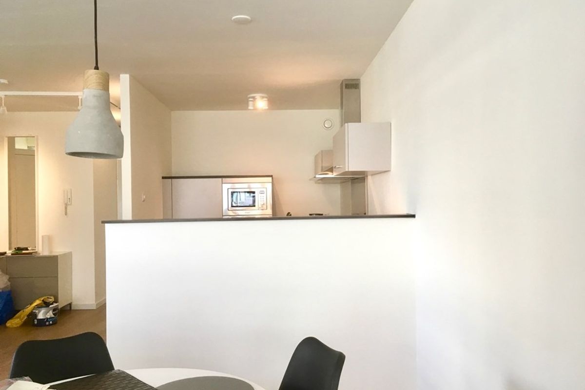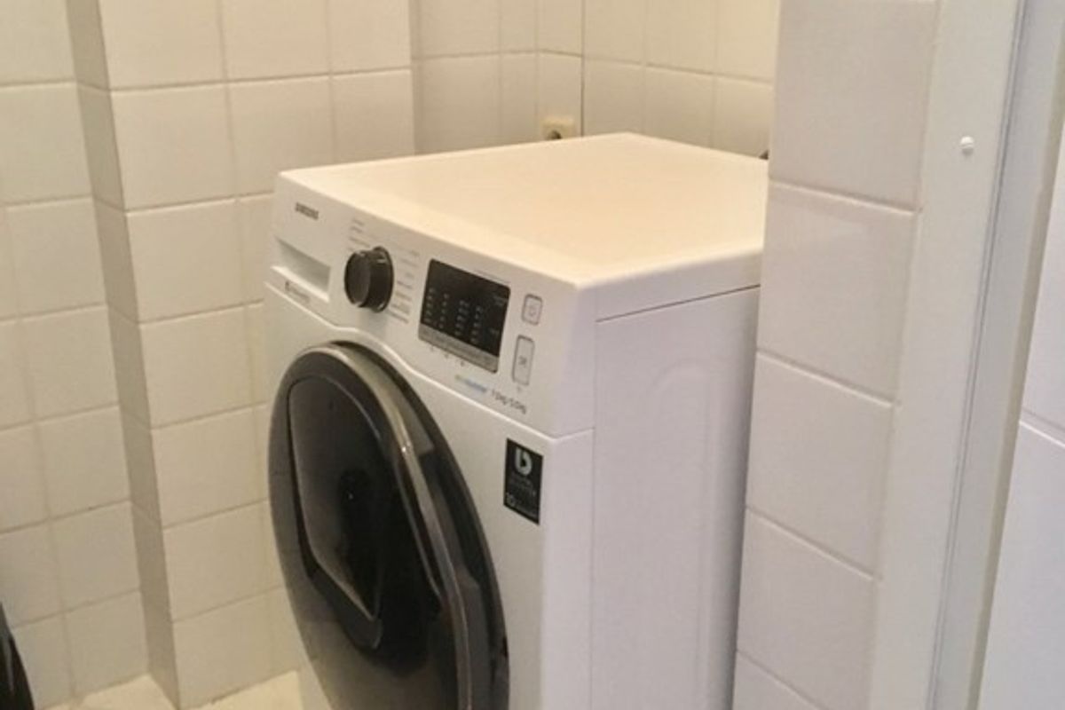 Shared main entrance with elevator to the 4th floor. Entrance to the apartment with a hallway and doors to all the rooms. Spacious and bright living room with doors to the balcony. Tastefully decorated and furnished. Open kitchen with bar and appliances such as dishwasher, oven, microwave, sink, freezer / fridge, induction stove and ample storage space. Master bedroom with big windows, a wardrobe and comfortable double bed. The 2nd bedroom can be used as a study or home office or sleeping room. Bathroom with walk-in shower, towel radiator and sink. Seperate toilet with faucet. A washing machien / dryer combination is available. Centrally heated and laminate flooring throughout the apartment. Fully double glazed.