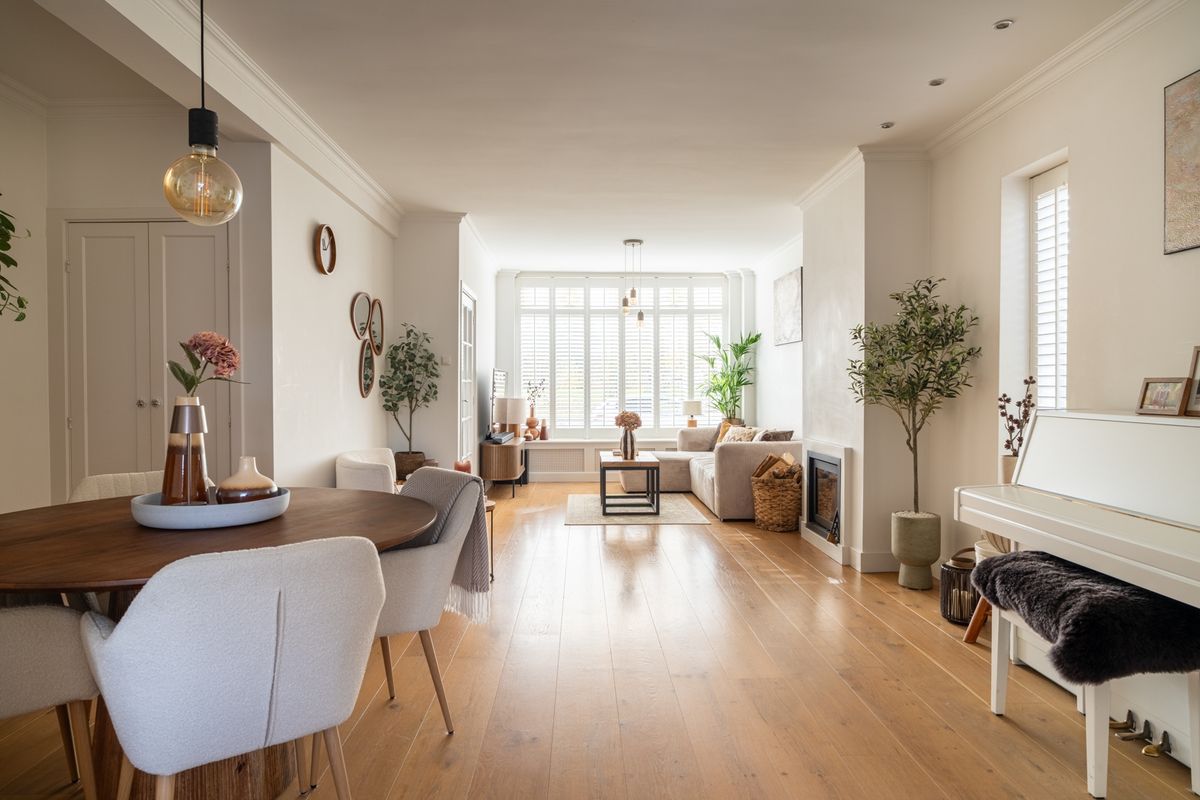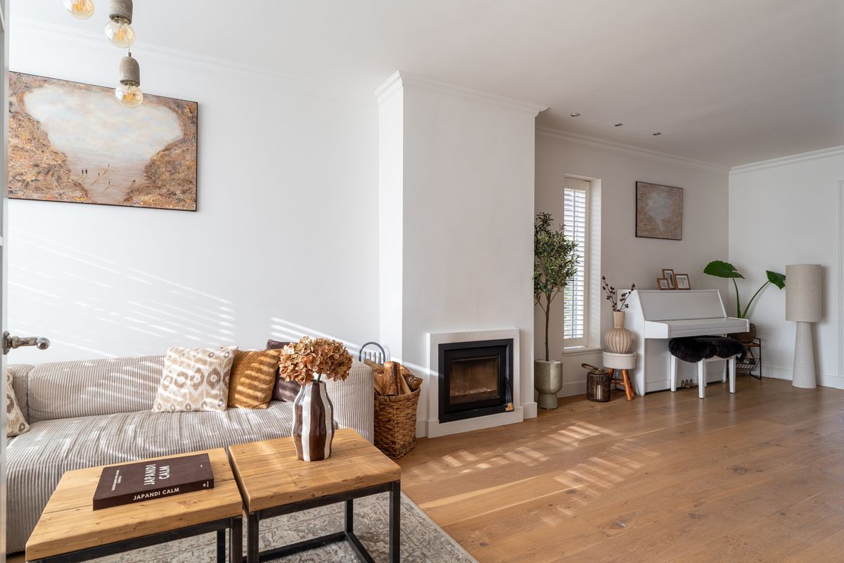 • Ruime woonkamer met en-suitedeuren en sfeervolle haard