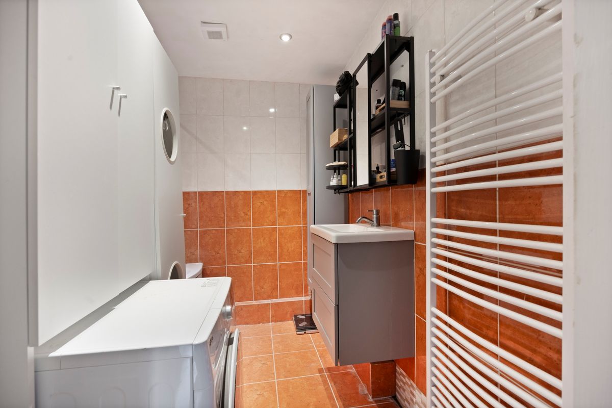 De woning biedt daarnaast een badkamer met ligbad en wastafel, aangevuld met een apart toilet.