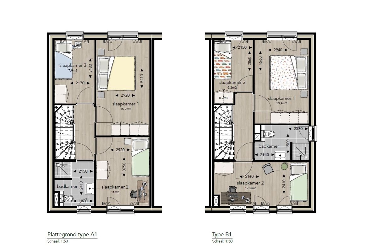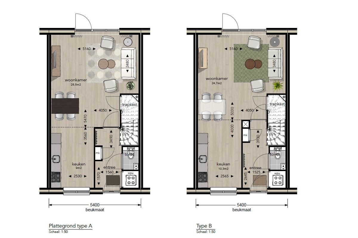 De woningen hebben een speels karakter door de diverse gevelstenen, de franse balkons en de kopgevel op de hoek. Dat maakt deze rijwoningen uniek. De woningen zijn voorzien van een woonkamer en keuken. De 1e verdieping heeft drie slaapkamers en een badkamer. De 2e verdieping heeft een kamer voor witgoed of een vierde slaapkamer. De woningen beschikken over een tuin met berging. Zaken als een warmtepomp, gasloos en vloerverwarming zijn natuurlijk standaard bij onze woningen.