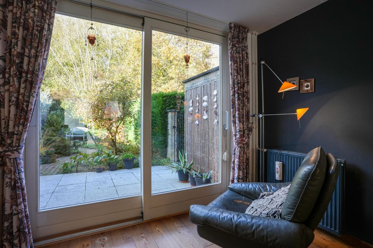 L-vormige woonkamer met schuifpui naar de tuin