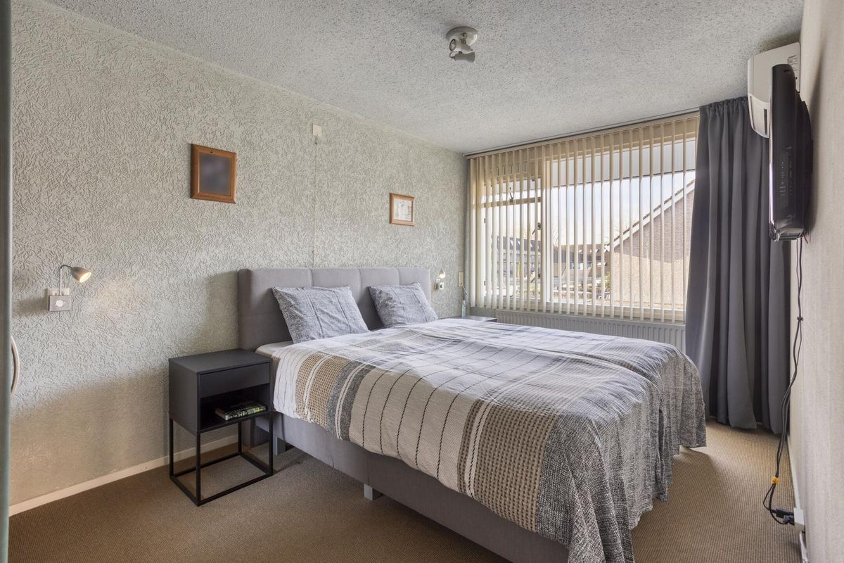 Aan de overloop grenzen drie slaapkamers, alle drie even praktisch ingedeeld. Twee aan de rustige achterzijde, waaronder de ouderslaapkamer met airco. De muren met grof granol, vloerbedekking en het spuitwerk plafond doen misschien wat nostalgisch aan, toch is alles heel netjes onderhouden.