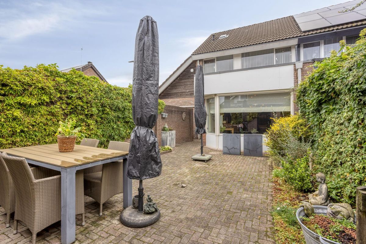 Met een paar potten vol groen, een lounge set en een barbecue creëer je hier moeiteloos je eigen buitenplek. Er is een achterom, een buitenkraan én een putje. Achterin staat een ruime stenen berging met dubbele deur. Groot genoeg voor fietsen, gereedschap of zelfs een motor. Aan de voorzijde kun je parkeren op eigen terrein onder de carport.