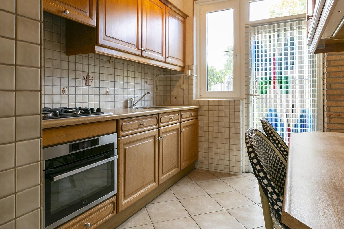 De halfopen keuken is aan de achterzijde gelegen, deze is voorzien van inbouwapparatuur, waaronder een 4 pits gaskookplaat, afzuigschouw, koelkast en een combimagnetron! Vanuit de keuken heeft u toegang tot de tuin.