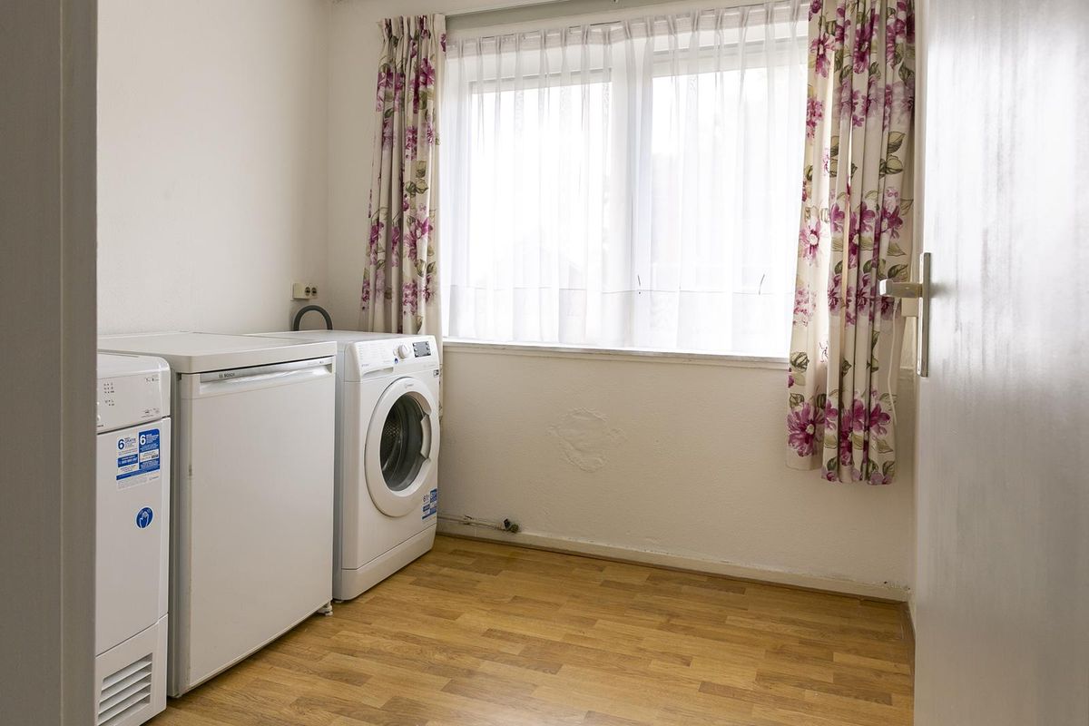 In de woonkamer heerst een prettige woonsfeer. Aan de voorzijde van de woonkamer is het zitgedeelte gesitueerd, hier geniet u van een vrij uitzicht over de straat. Aan de achterzijde van de woonkamer bevindt zich het eetgedeelte, door de grootte van de woonkamer is hier voldoende ruimte voor een eettafel. Middels de schuifpui is ook vanuit de woonkamer het terras bereikbaar.