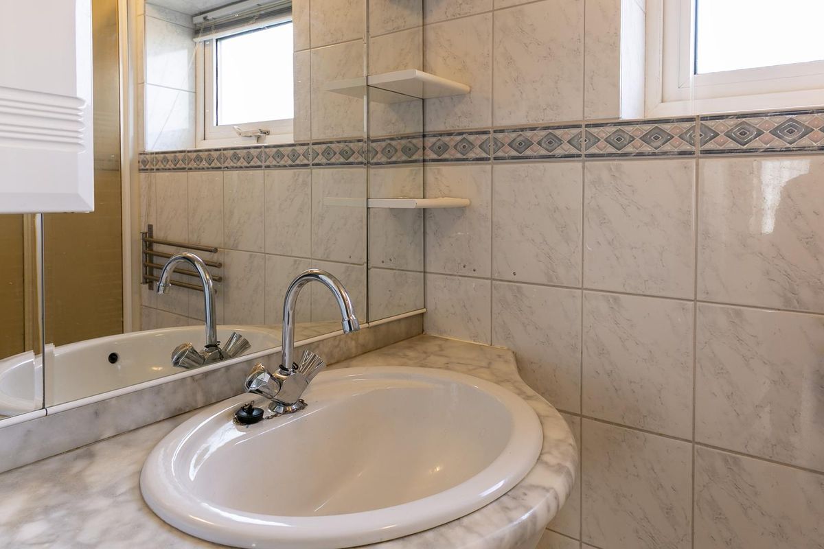Vanuit de hal heeft u toegang tot het toilet met fontein, trapopgang en de keuken.