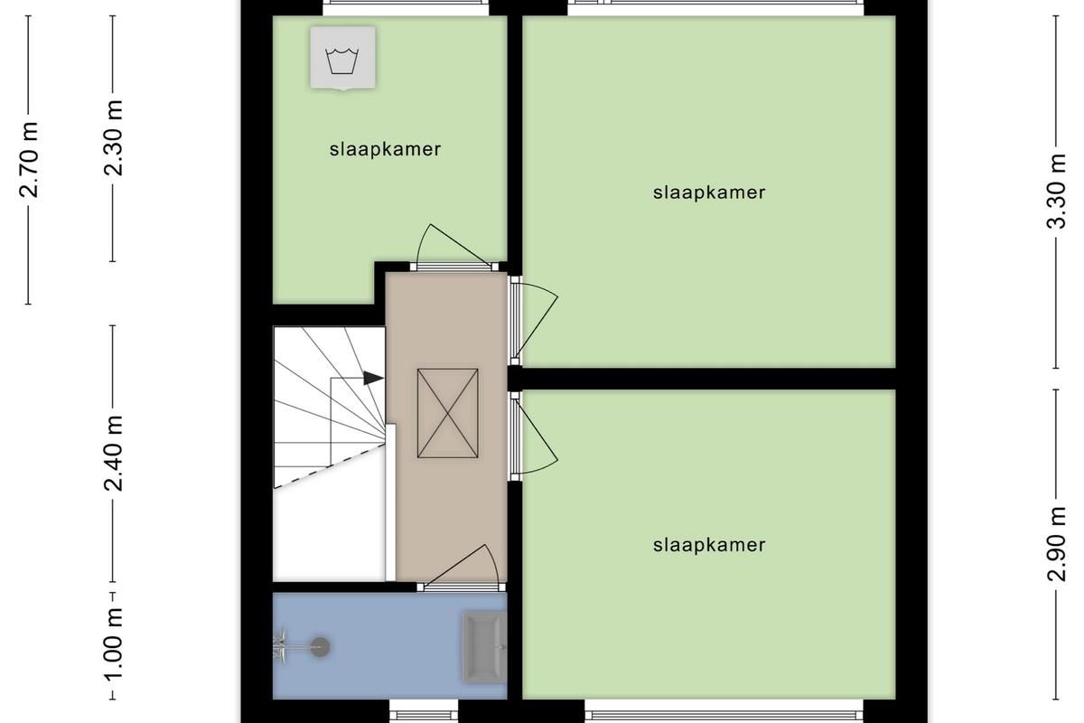 Op de 1e verdieping komen we in totaal 3 slaapkamers tegen, de grootste slaapkamer is aan de achterzijde gelegen.