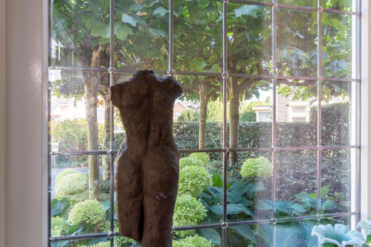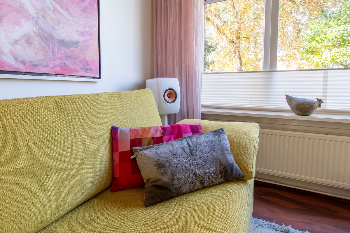 Buiten: De onder architectuur aangelegde tuin heeft allereerst een auto-opstelplaats. Voor degene die elektrisch rijden is er al een laadpaal geplaatst. U rijdt nog niet elektrisch? Dan wordt de verleiding vanaf nu wel heel erg groot... De achtertuin is op het zuiden georiënteerd waarbij een notenboom op een mooie zomerdag zorgt voor schaduw. De achtertuin is opgedeeld in twee delen. Een gezellig, knus en wat kleiner deel met het karakter van een stadstuin direct achter de woning. En een groter deel naast de woning zonder dat dit van de weg af is te zien. Hier kan met gemak een grote tuintafel worden geplaatst en kunnen al uw vrienden worden uitgenodigd.
