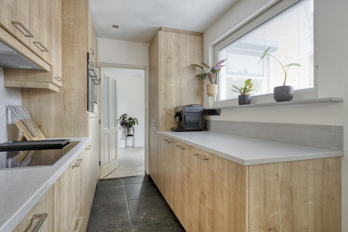 Via de hal met trapopgang, toilet en meterkast betreedt u de lichte en royale woonkamer. Het eetgedeelte aan de voorzijde van de woning is ideaal voor gezellige diners, terwijl de zithoek aan de achterzijde een prachtig uitzicht biedt op de grote, zonnige tuin. Dankzij een uitbouw aan de achterzijde is er een royale keuken ontstaan, waardoor koken een feestje wordt. De keuken is uitgevoerd in een warme houttint en voorzien van een composiet werkblad, met twee lange rechte delen die meer dan voldoende ruimte bieden voor het bereiden van culinaire hoogstandjes. Ook de inbouwapparatuur is royaal: inductiekookplaat, 90 cm vlakscherm, oven, combi-oven, vaatwasser, koeler en vriezer. Perfect voor wie graag kookt voor familie en vrienden!