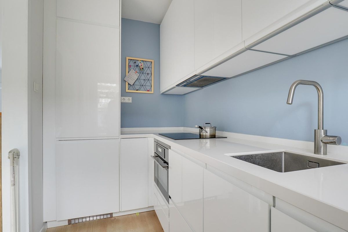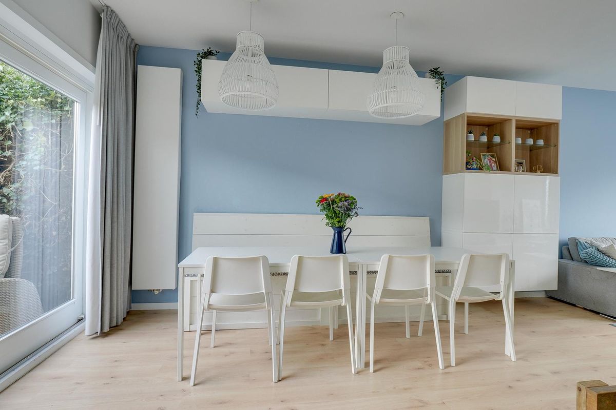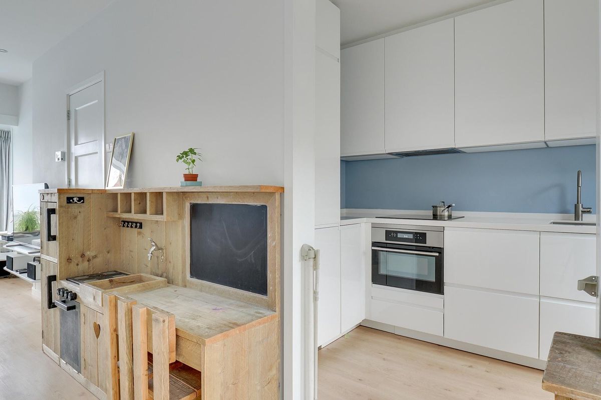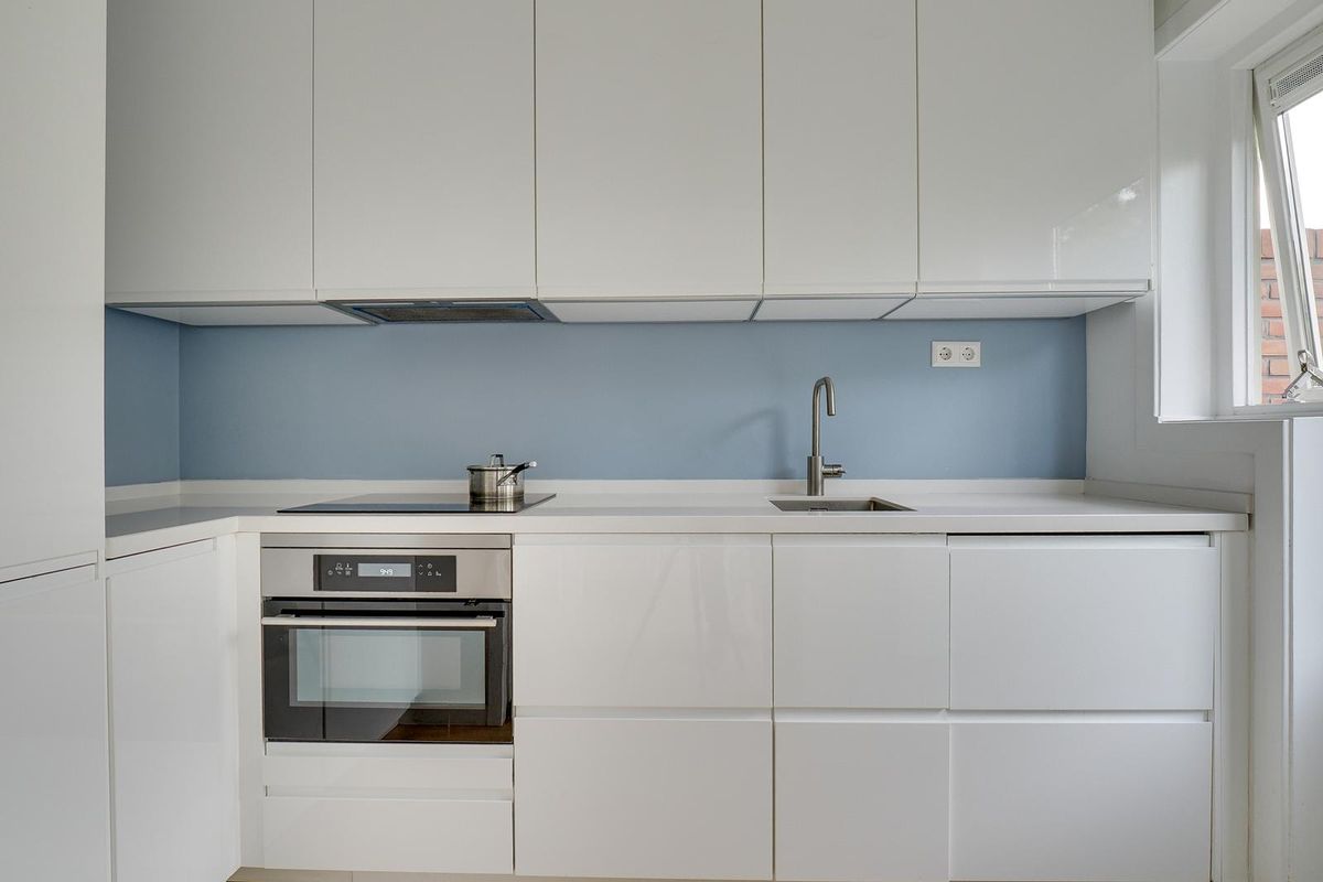 De keuken is gesitueerd in een hoekopstelling en heeft tevens een buitendeur naar de achtertuin. De keuken is voorzien van diverse inbouwapparatuur.