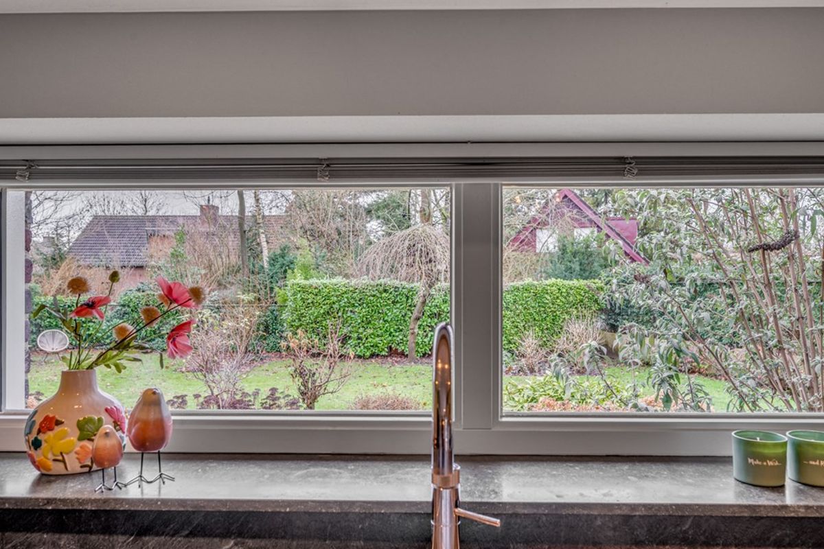 De royale tuin is met zorg aangelegd en gunstig gesitueerd op het zuiden, waardoor je hier de hele dag door van de zon kunt genieten. Dankzij de ruime opzet en de volwassen beplanting ervaar je een gevoel van rust, groen en optimale privacy. Of je nu kiest voor een plek in de zon of liever in de schaduw zit, er is altijd een fijne hoek te vinden om heerlijk te vertoeven.