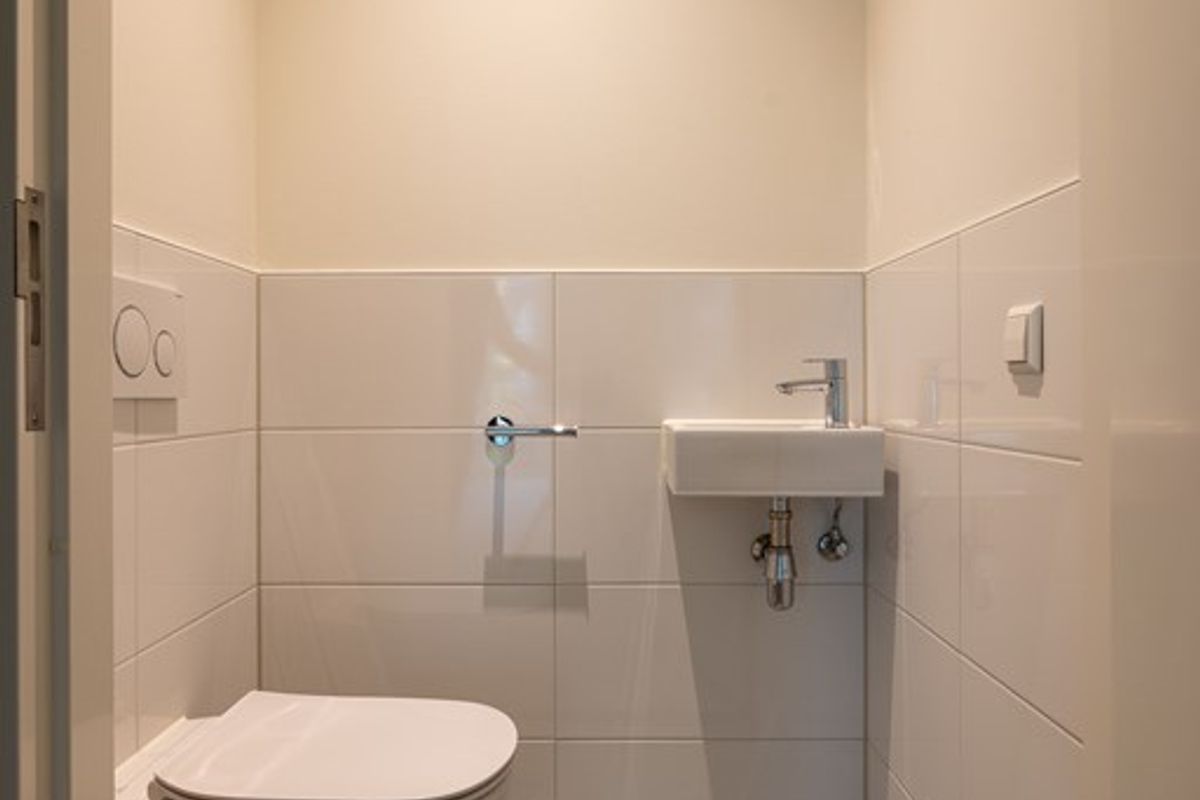 In de gang bevindt zich een klein berghok waar wasmachine uitsluiting zit, daarnaast bevindt zich het toilet met fonteintje.