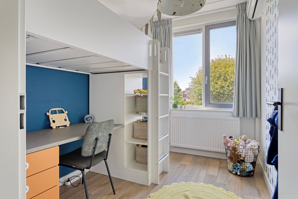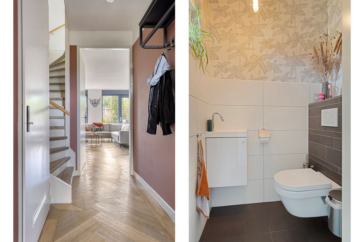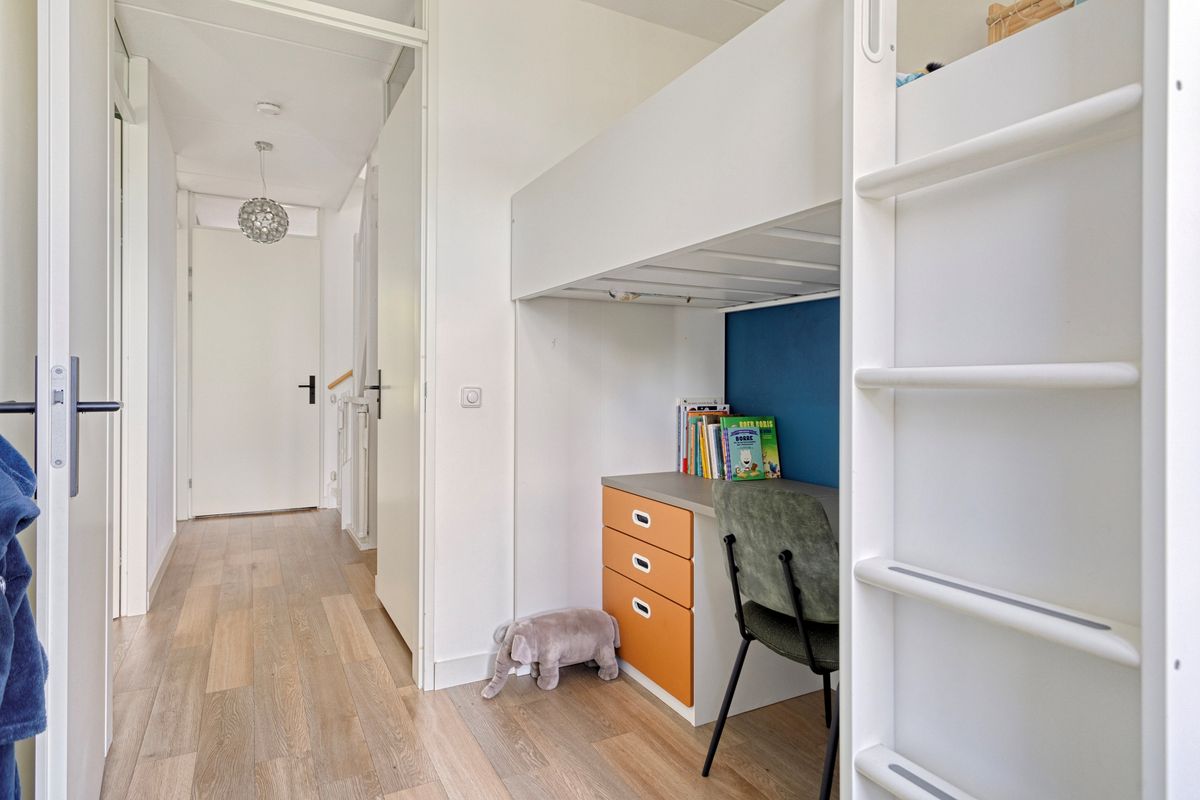 Op de eerste verdieping bevinden zich twee royale slaapkamers en een derde, compactere kamer – ideaal als kinderkamer, werkplek of walk-in closet. De slaapkamers aan de achterzijde zijn voorzien van airconditioning voor optimaal comfort tijdens warme dagen. Daarnaast is er een separaat tweede toilet en een moderne badkamer met ligbad voorzien van sfeervolle LED-stripverlichting, inloopdouche en wastafelmeubel.