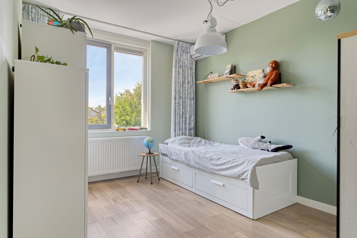 De tweede verdieping telt twee ruime slaapkamers, waarvan de master-bedroom grenst aan een en suite badkamer met inloopdouche, toilet en dubbele wastafel. Tijdens het tandenpoetsen uitzicht op de Nijmeegse Skyline. Er is extra bergruimte netjes weggewerkt achter knieschotten en op de handige vliering.