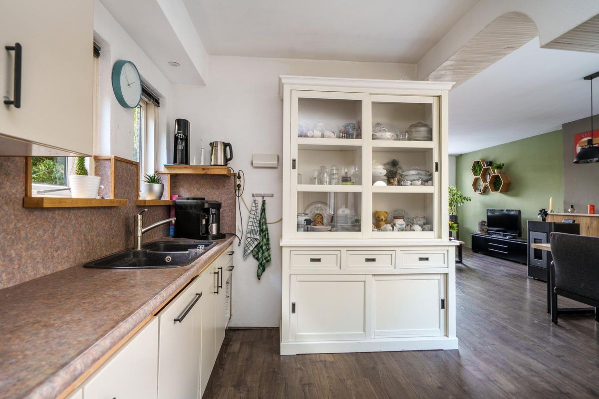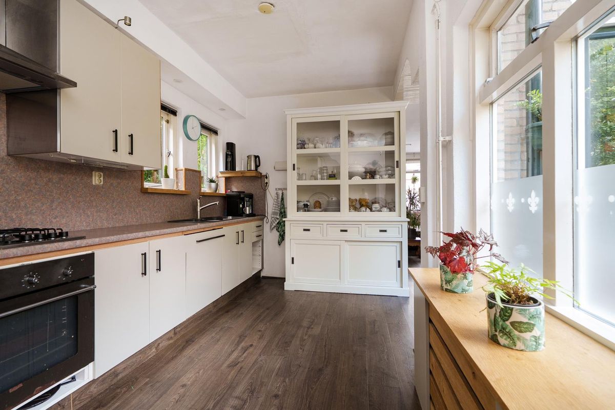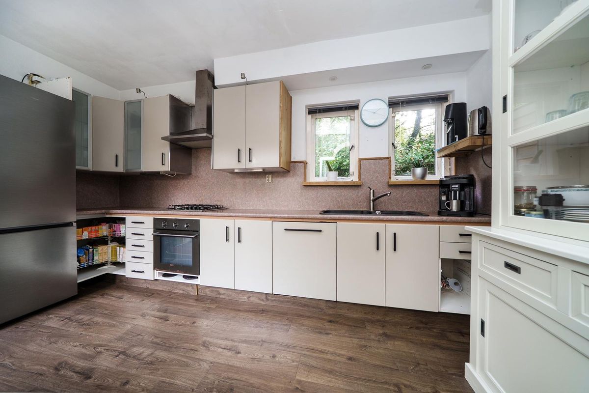 * Aan de achterzijde bevindt zich de ruime keuken welke is voorzien van een oven, gaskookplaat, afzuigkap, en een vaatwasser;