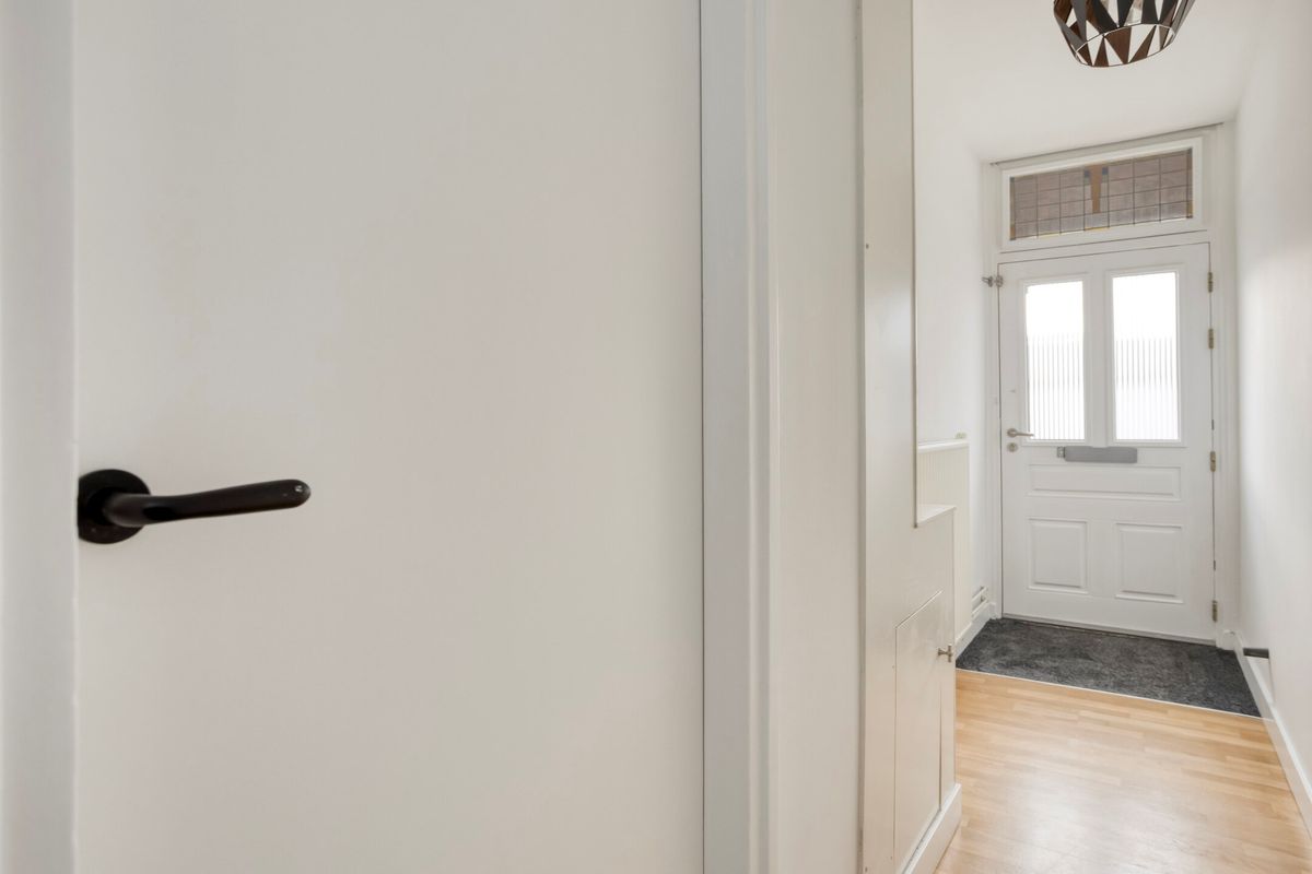 Vanuit de hal/entree met meterkast is er toegang tot de trapopgang naar de eerste verdieping en de woonkamer. Vanuit de woonkamer is er toegang tot de keuken en middels openslaande tuindeuren is er toegang tot de achtertuin. In de woonkamer is een trapkast aanwezig wat zorgt voor extra bergruimte. De keuken (bj.2020), in rechte opstelling, is v.v. diverse kasten en lades, een kunststof werkblad met spoelbak en mengkraan, een 5-pits gaskookplaat, afzuigkap en een vaatwasser. Vanuit de keuken is er toegang tot een berging/bijkeuken. Vanuit deze ruimte is er toegang tot het toilet en tot de achtertuin. Er is tevens een wandkast met ingebouwde oven aanwezig. Onder deze kast is een aansluiting voor de wasmachine. Het toilet is v.v. een staand toilet en de wanden en het plafond zijn afgewerkt met stucwerk. De vloer in de woonkamer en de hal is v.v. een houten vloer (multiplank). De vloer van de keuken, de bijkeuken en het toilet is v.v. pvc. De wanden en plafonds zijn afgewerkt met stucwerk. De kozijnen zijn van kunststof en van hout en grotendeels v.v. HR++ glas. De tuindeuren in de woonkamer en het raam in de keuken zijn v.v. een hor en rolluiken. Het raam in het toilet is eveneens v.v. een hor.