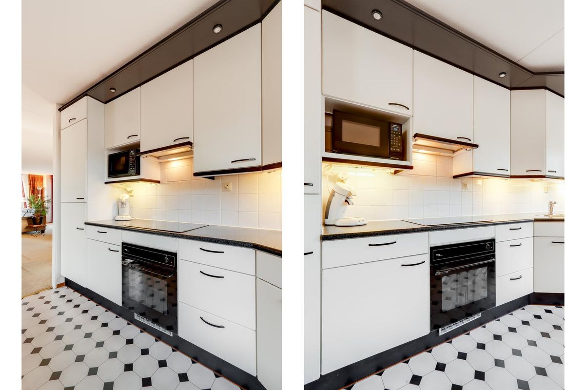 Bij binnenkomst in de hal tref je de garderobe, het toilet, technische ruimte en toegang tot alle vertrekken. Je loopt vanuit de hal door naar de woonkamer. De lichte woonkamer, met toegang tot het balkon, biedt een vrij uitzicht over het omliggende groen, water en Tudorpark. De ruime open keuken sluit mooi aan op de woonruimte en bevindt zich aan de voorzijde van de woning. De keuken is voorzien van een praktische wandopstelling met veel bergruimte. Daarnaast beschikt de keuken over diverse inbouwapparatuur, waaronder een oven, koel-vriescombinatie en afzuigkap.