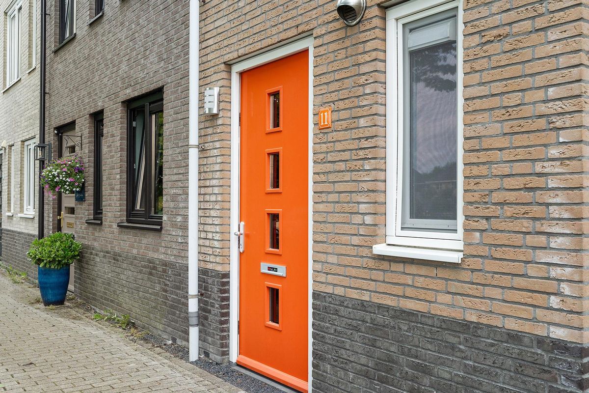 - Opvallende oranje voordeur – een vrolijke eyecatcher
