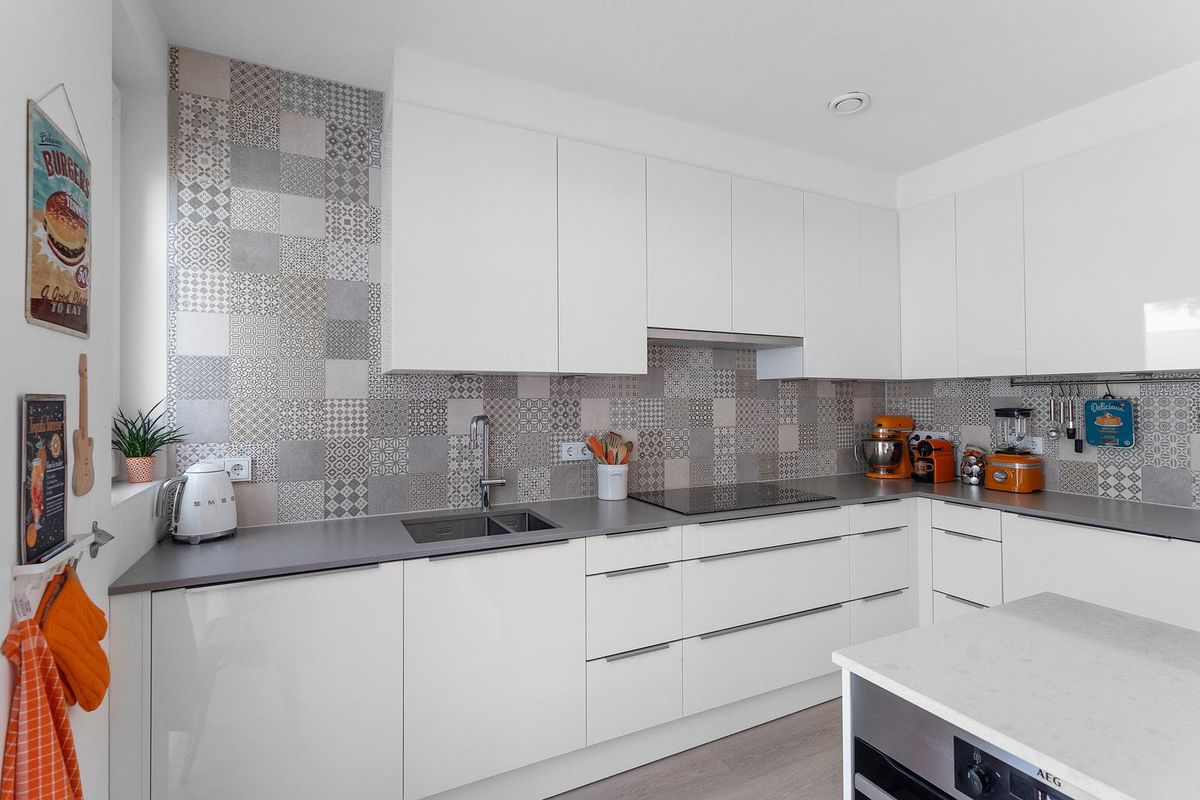 - Moderne keuken met schiereiland en inbouwapparatuur