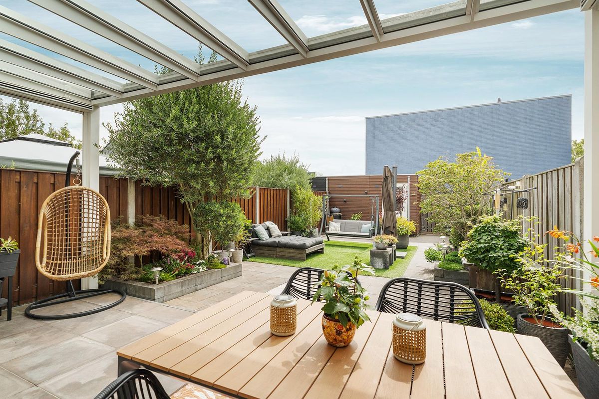- Fraai aangelegde achtertuin met ruime terrasoverkapping