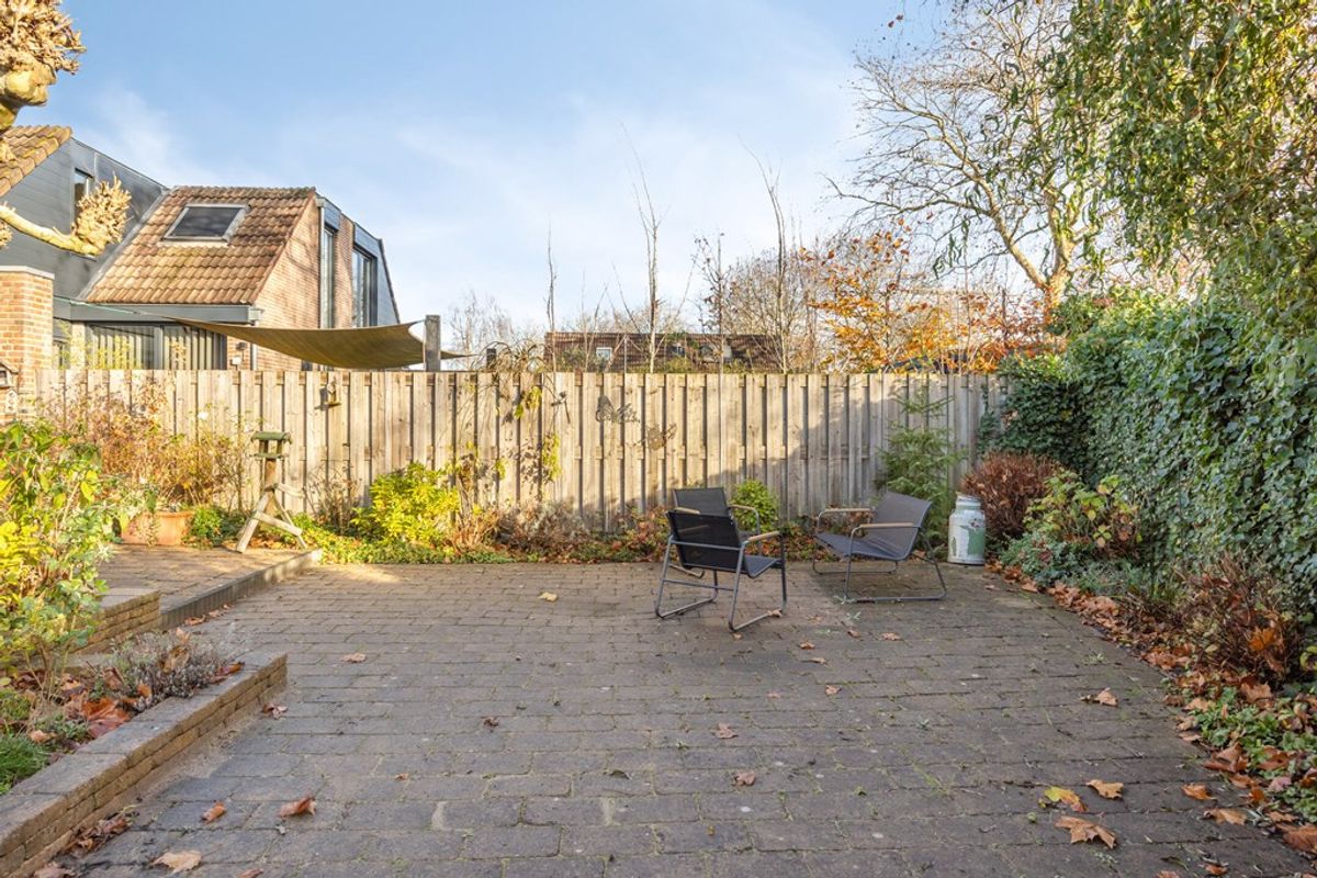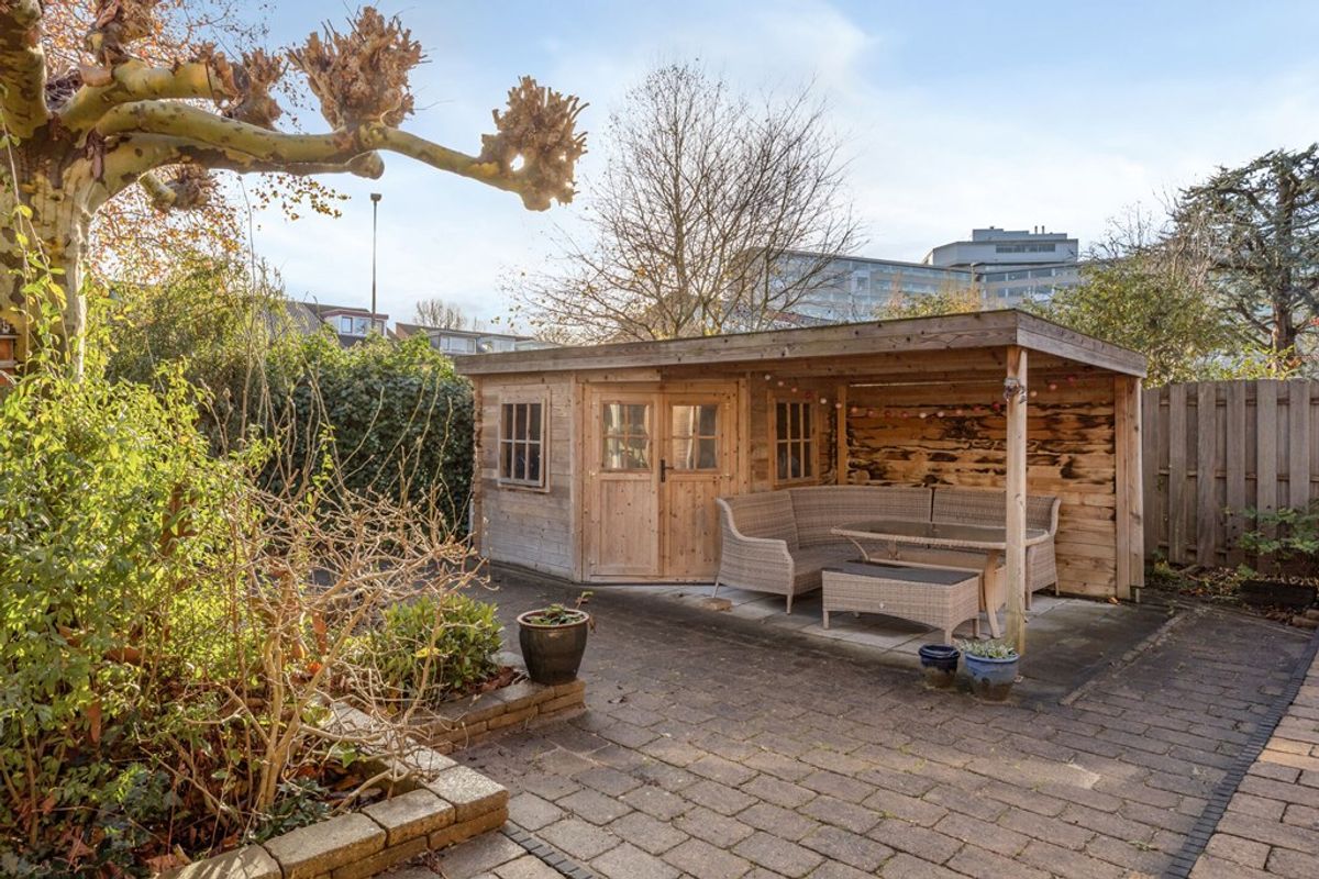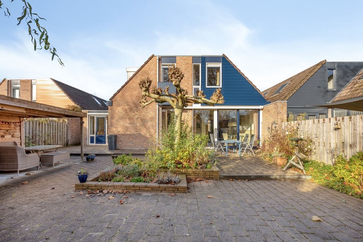 Vanuit de living is er middels een moderne schuifpui toegang naar de heerlijke, ruime tuin. In de tuin vind u o.a. een heerlijke, overdekte loungehoek met extra bergruimte.