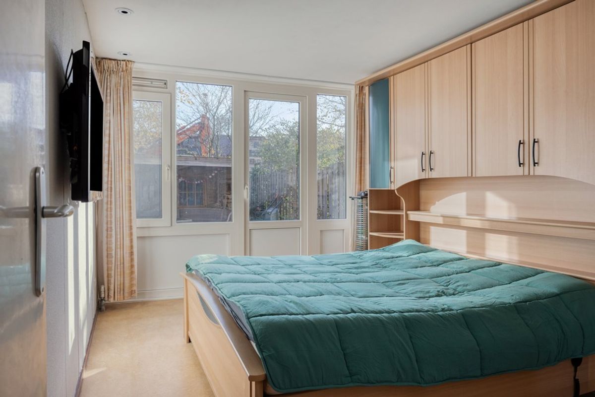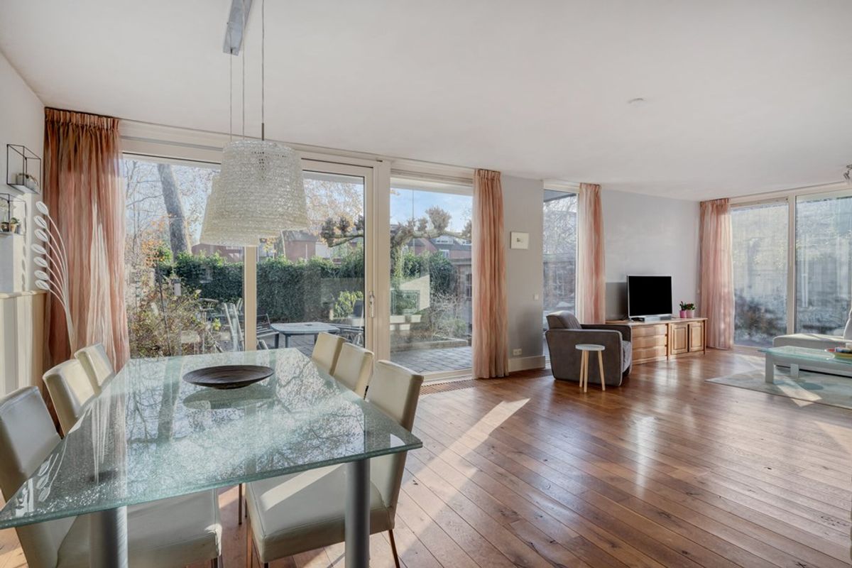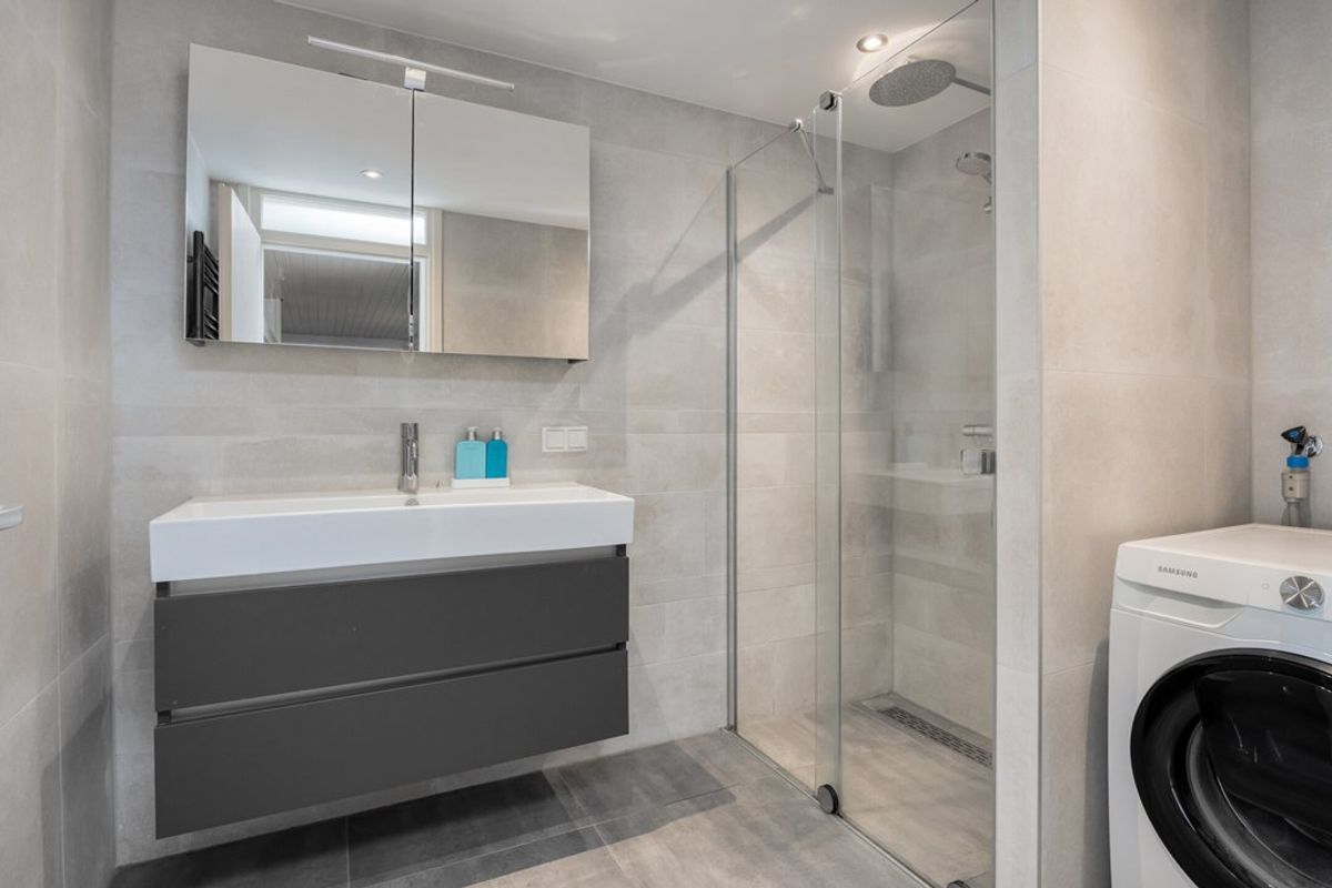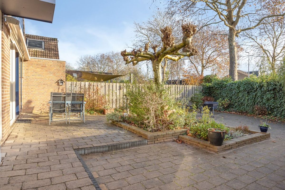 Vanuit de living is er middels een moderne schuifpui toegang naar de heerlijke, ruime tuin. In de tuin vind u o.a. een heerlijke, overdekte loungehoek met extra bergruimte.