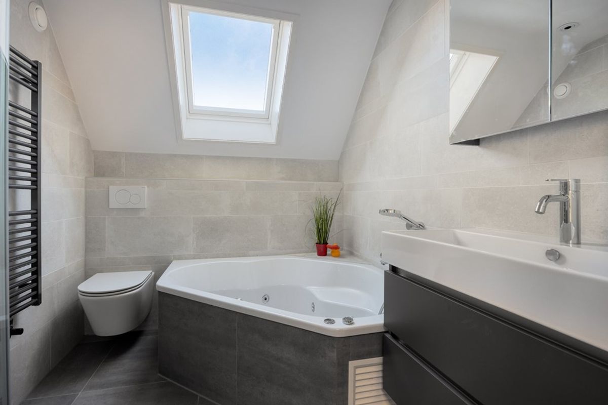 Overloop, luxe badkamer met jacuzzi, hangend toilet, wastafelmeubel en separate douche, vier ruime slaapkamers waarvan er 2 zijn vergroot met een zeer ruime dakkapel. Optioneel is er de mogelijkheid om deze verdieping verder uit te bouwen boven de garages zodat er nog meer kamers gerealiseerd kunnen worden.