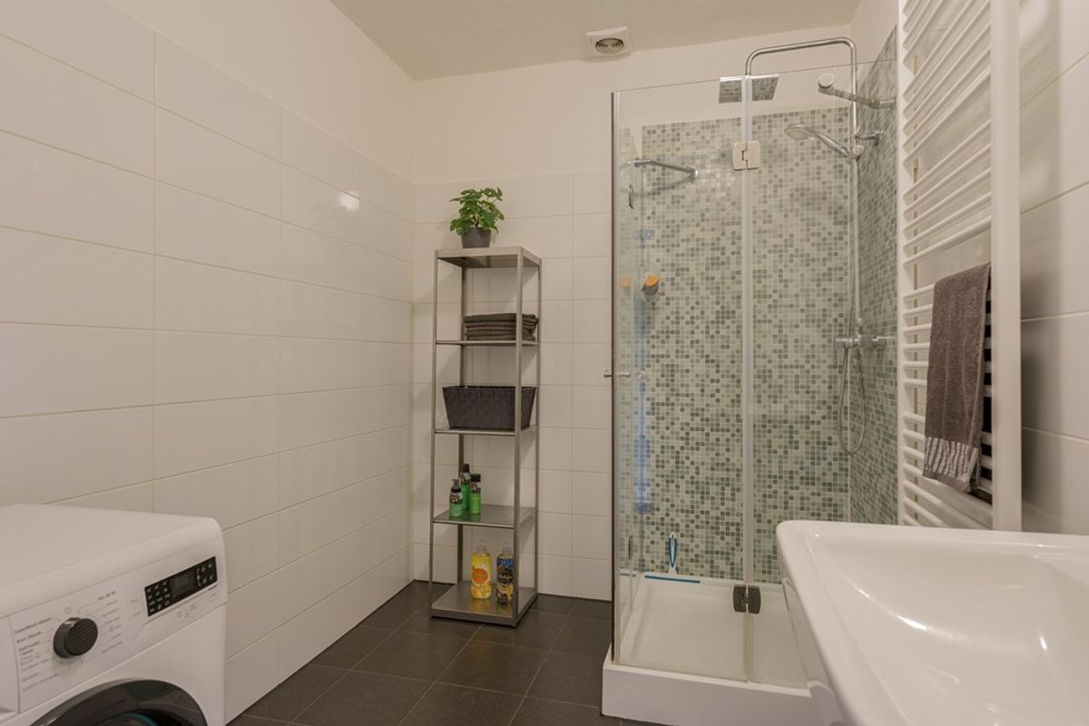 De aansluiting voor de wasmachine en droger bevindt zich eveneens in de badkamer, wat zorgt voor optimaal gebruiksgemak.