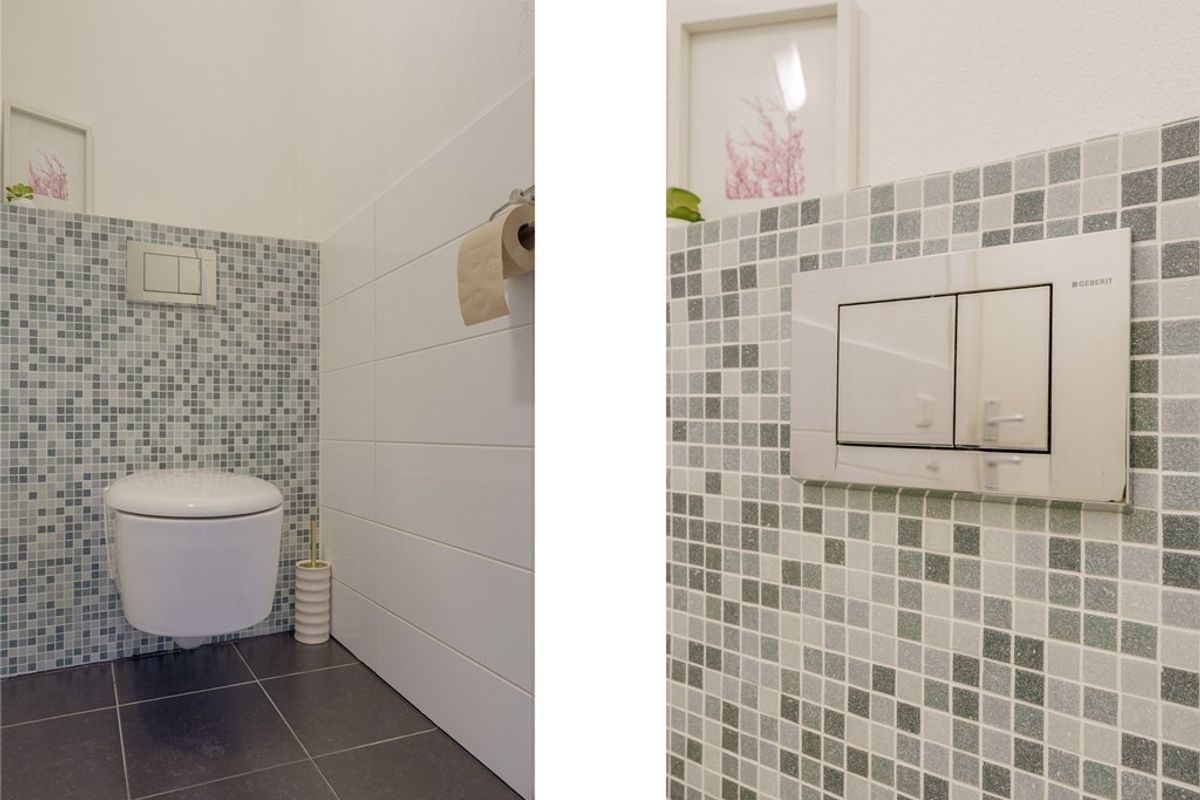 De hal biedt toegang tot de woonkamer, de slaapkamer en badkamer. Vanuit de hal hebt u ook toegang tot de deels betegelde toiletruimte met zwevend toilet.