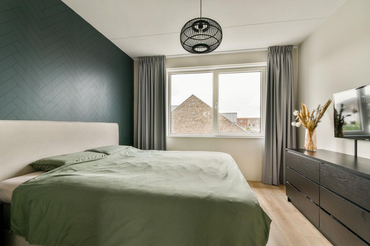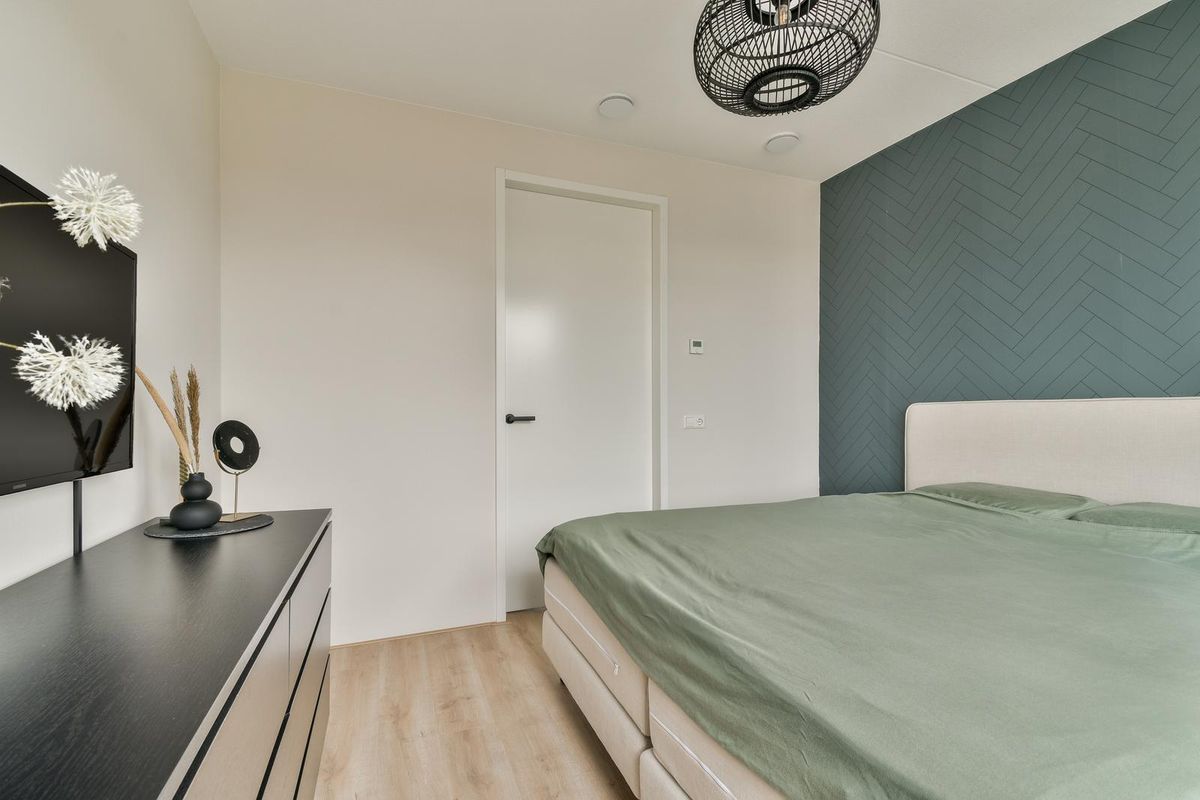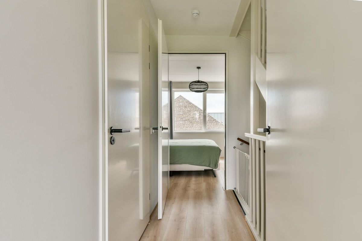 Overloop met toegang tot twee slaapkamers. Beide slaapkamers zijn identiek aan de slaapkamers op de eerste verdieping en zijn net als de overloop voorzien van een laminaatvloer. De slaapkamer aan de achterzijde is voorzien van een elektrisch rolluik. Door de rechte wanden is er geen ruimteverlies. Tevens is er via de overloop toegang tot de technische ruimte, hier bevinden zich de wasmachine-aansluiting en de WTW-unit. Ook deze gehele verdieping beschikt over vloerverwarming en -koeling en tripleglas.