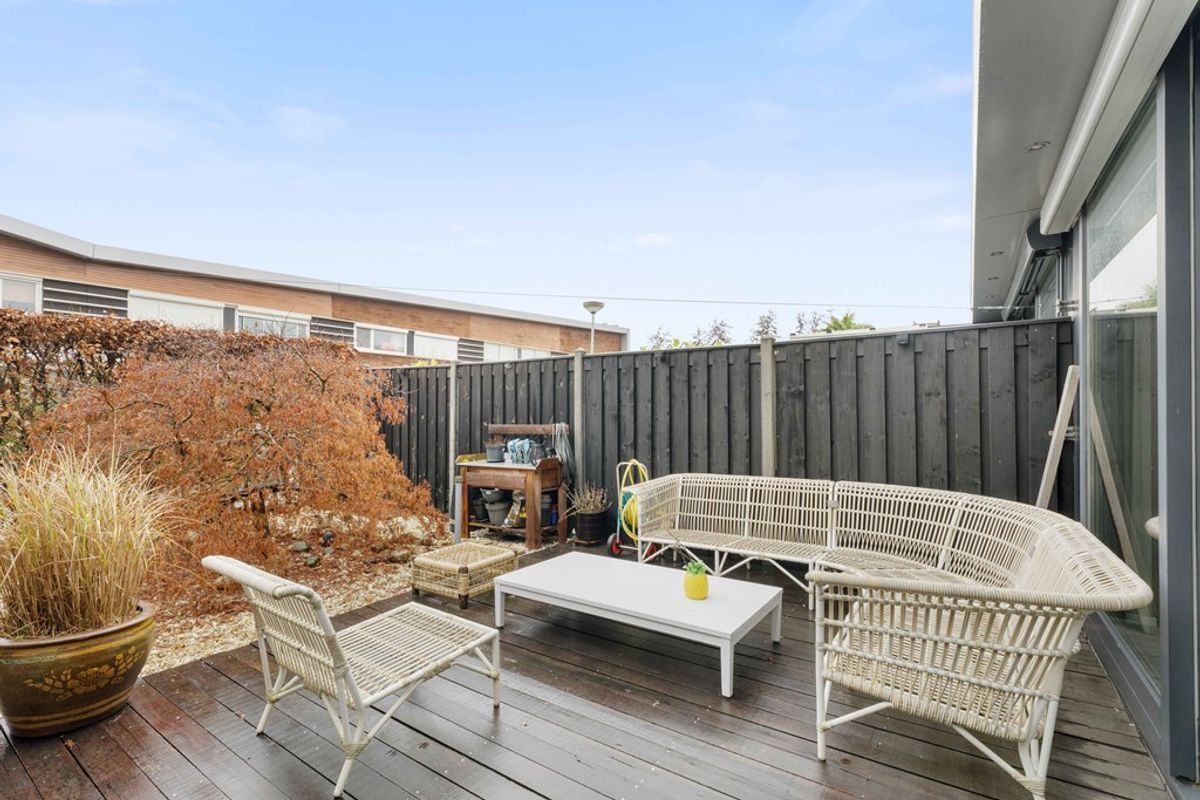 You enter the property through the spacious front garden, where a partly covered area has been created for enjoyable evenings outdoors. From the hallway you walk into the kitchen, which is generously sized and offers ample space for a large dining table. The kitchen is equipped with a dishwasher, gas hob, extractor hood and oven and forms a pleasant place to cook and gather.
