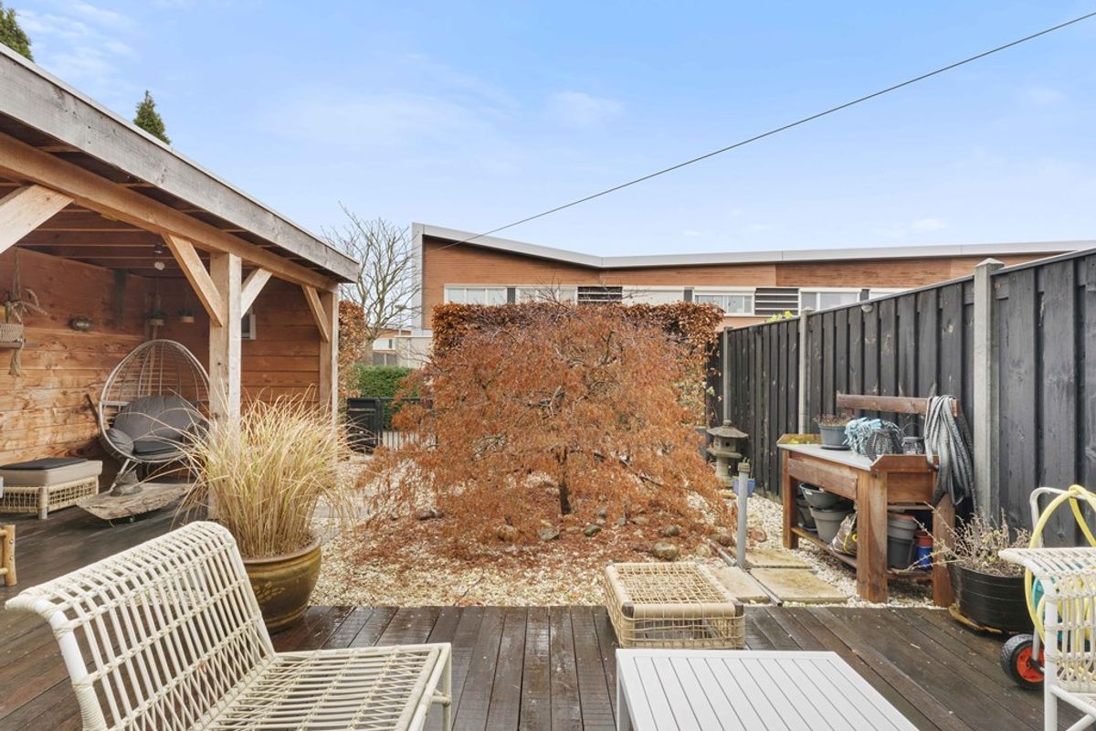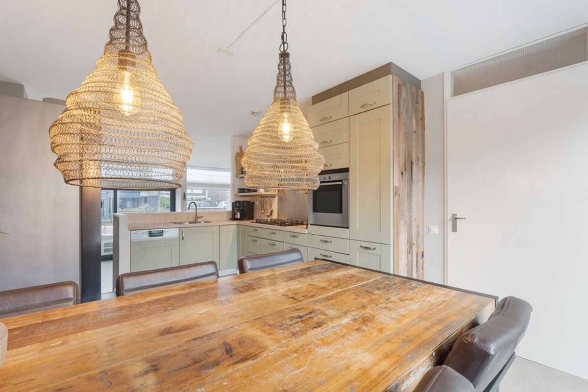 Via de ruime voortuin, waar deels een overkapping is gerealiseerd voor gezellige avonden buiten, kom je binnen in de hal. Vanuit hier loop je naar de keuken, die royaal is opgezet en voldoende ruimte biedt voor een grote eettafel. De keuken is voorzien van een vaatwasser, gaskooktoestel, afzuigkap en oven en vormt een prettige plek om te koken en samen te komen.