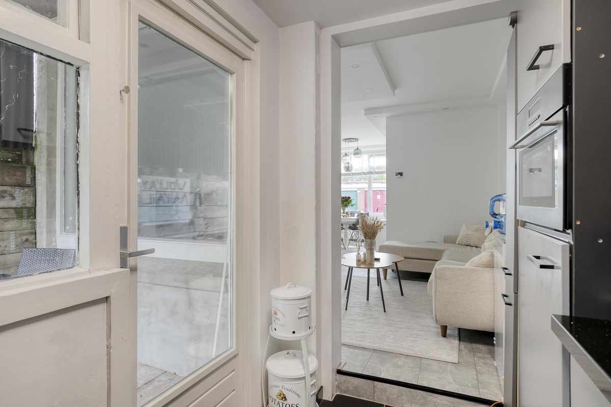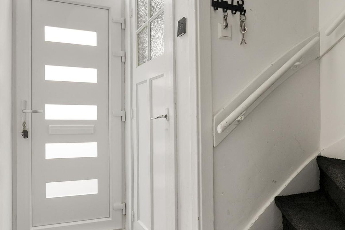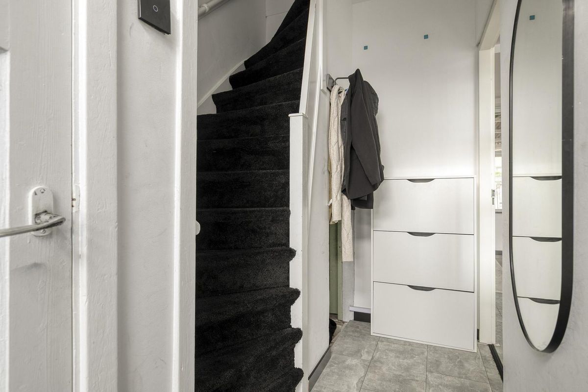 - Entree: Bij binnenkomst valt direct de lichte en verzorgde hal op. De ruimte is praktisch ingedeeld en biedt toegang tot zowel de woonkamer als de trap naar boven.