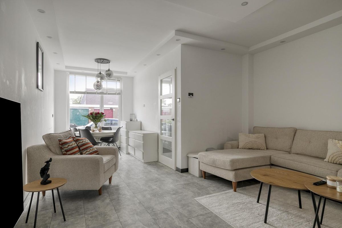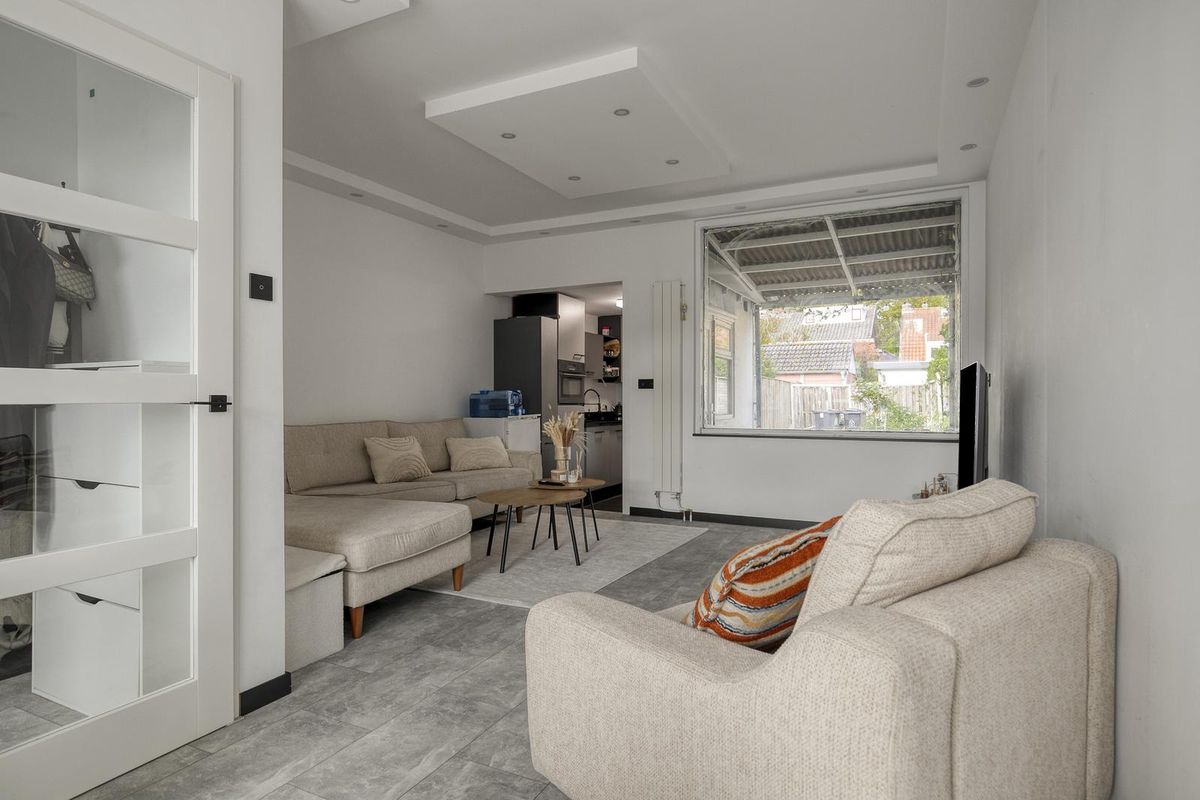 - Woonkamer: De woonkamer is sfeervol afgewerkt met strakke, lichtgrijze vloertegels en glad gestuukte wanden, wat zorgt voor een moderne en rustige uitstraling. De open indeling en grote ramen maken de ruimte heerlijk licht en bieden volop plek.