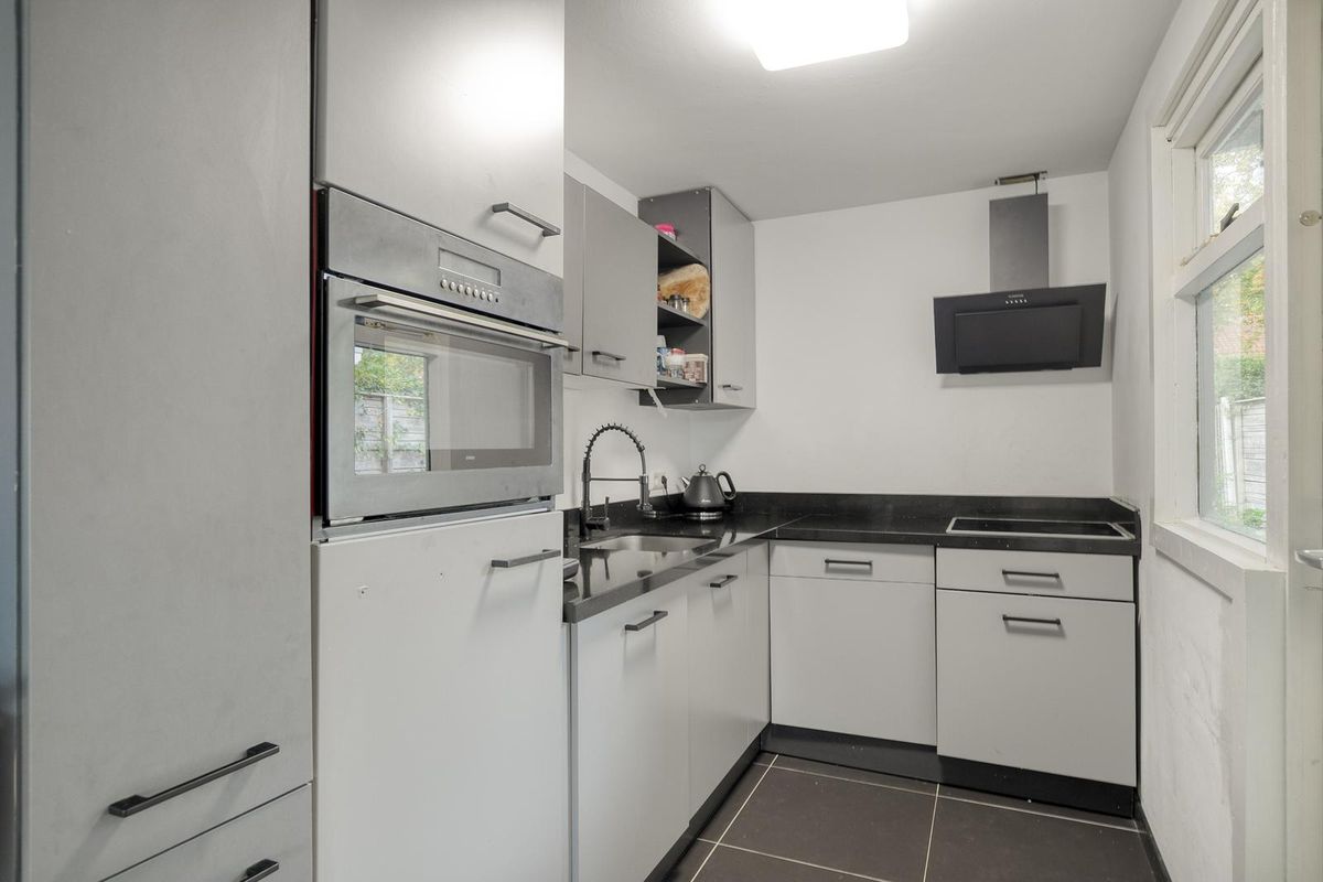 - Keuken: De moderne hoekkeuken is efficiënt ingedeeld en voorzien van diverse inbouwapparatuur. Het zwarte werkblad in combinatie met de strakke fronten zorgt voor een stijlvolle en tijdloze uitstraling.