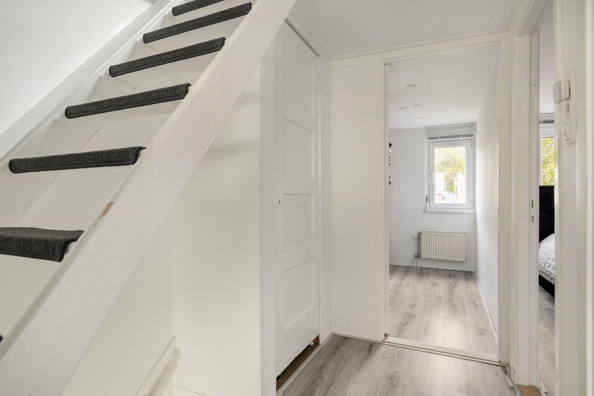 - Overloop: De ruimte is licht en keurig afgewerkt en geeft toegang tot de slaapkamers, de badkamer en een praktische inbouwkast. Dankzij de laminaatvloer en witte wanden ontstaat een rustige, moderne sfeer. Via de open trap bereik je de tweede verdieping.