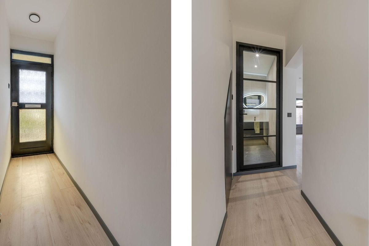* Woningentree; hal voorzien van laminaatvloer, vaste kast met vernieuwde groepenkast en wasmachineaansluiting.